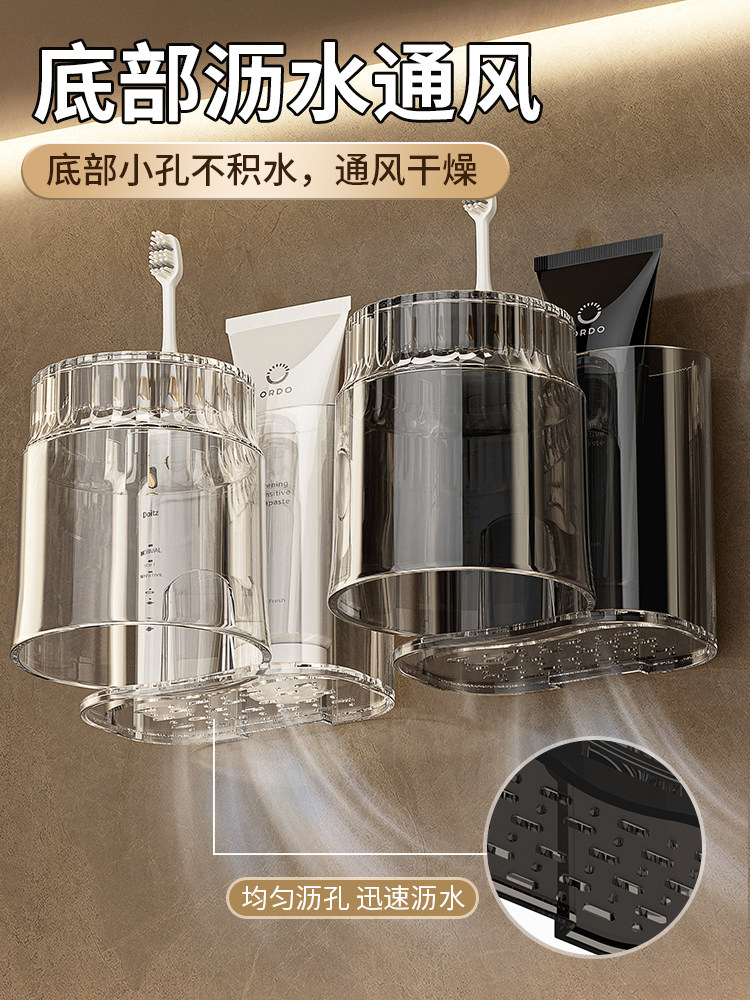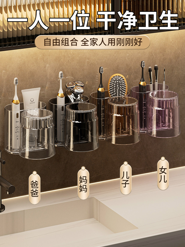 轻奢电动牙刷漱口杯置物架牙杯架壁挂免打孔卫生间洗漱杯架子收纳