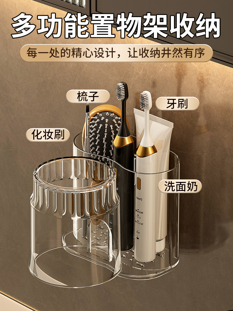 卫生间牙刷置物架电动吹风机支架家庭洗漱台壁挂式漱口杯牙具架子