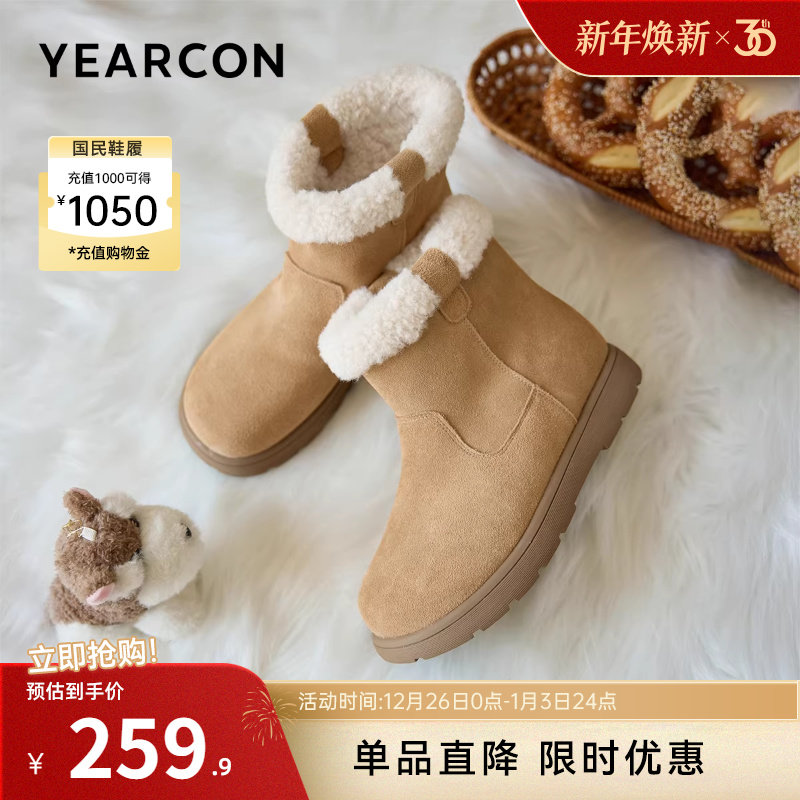 意尔康女鞋2025冬季新款加绒保暖棉鞋平底短筒雪地靴户外休闲短靴