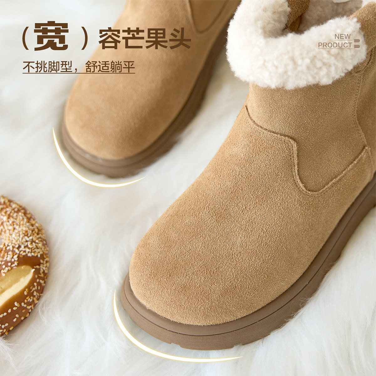 低帮厚底雪地靴女2025新款冬季懒人一脚蹬毛毛棉鞋加绒加厚女鞋子