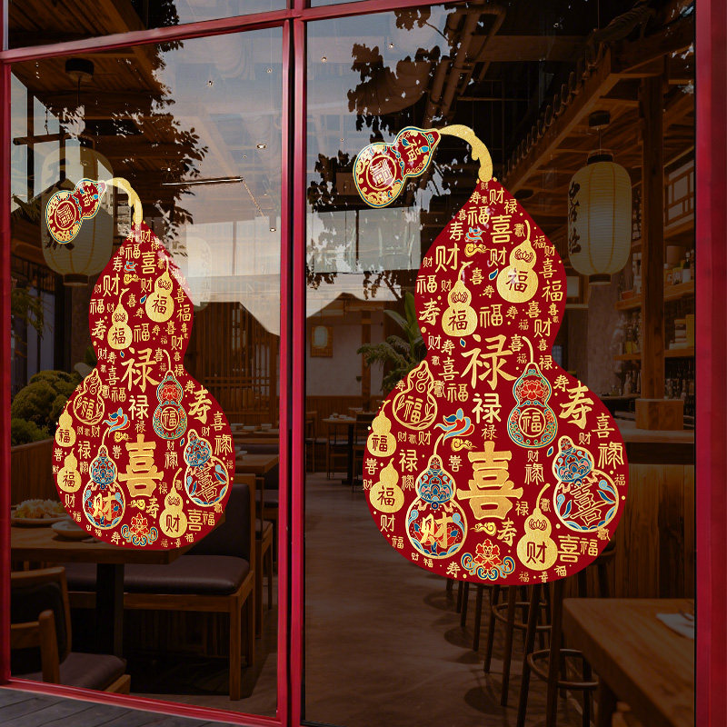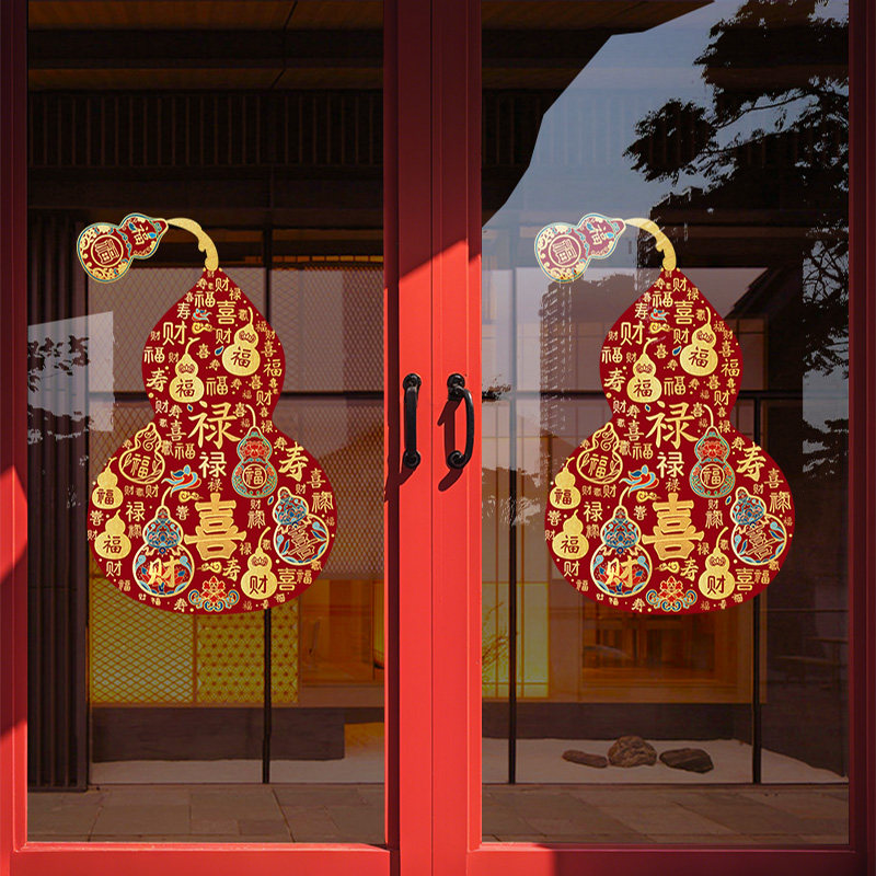 马年新年装饰葫芦2026春节玻璃门贴纸氛围窗贴窗花布置静电墙贴画