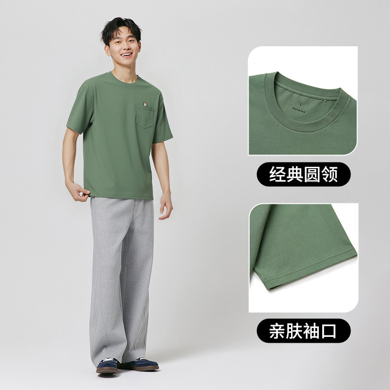 热风2026年夏季新款男士宠物口袋短T恤纯棉细腻柔软舒适亲肤