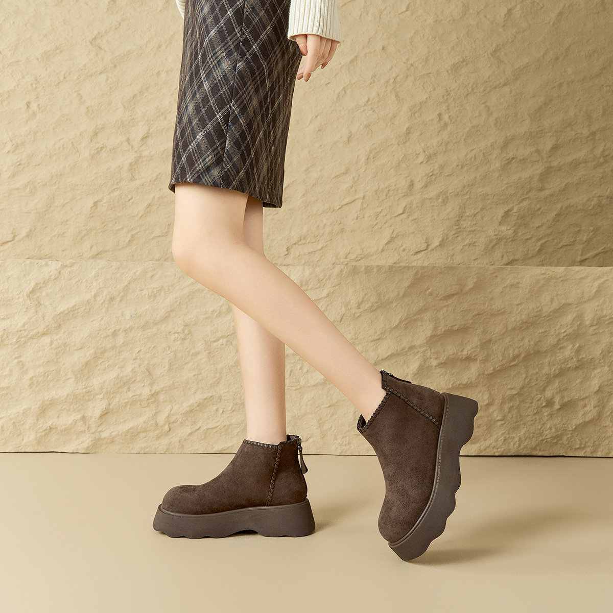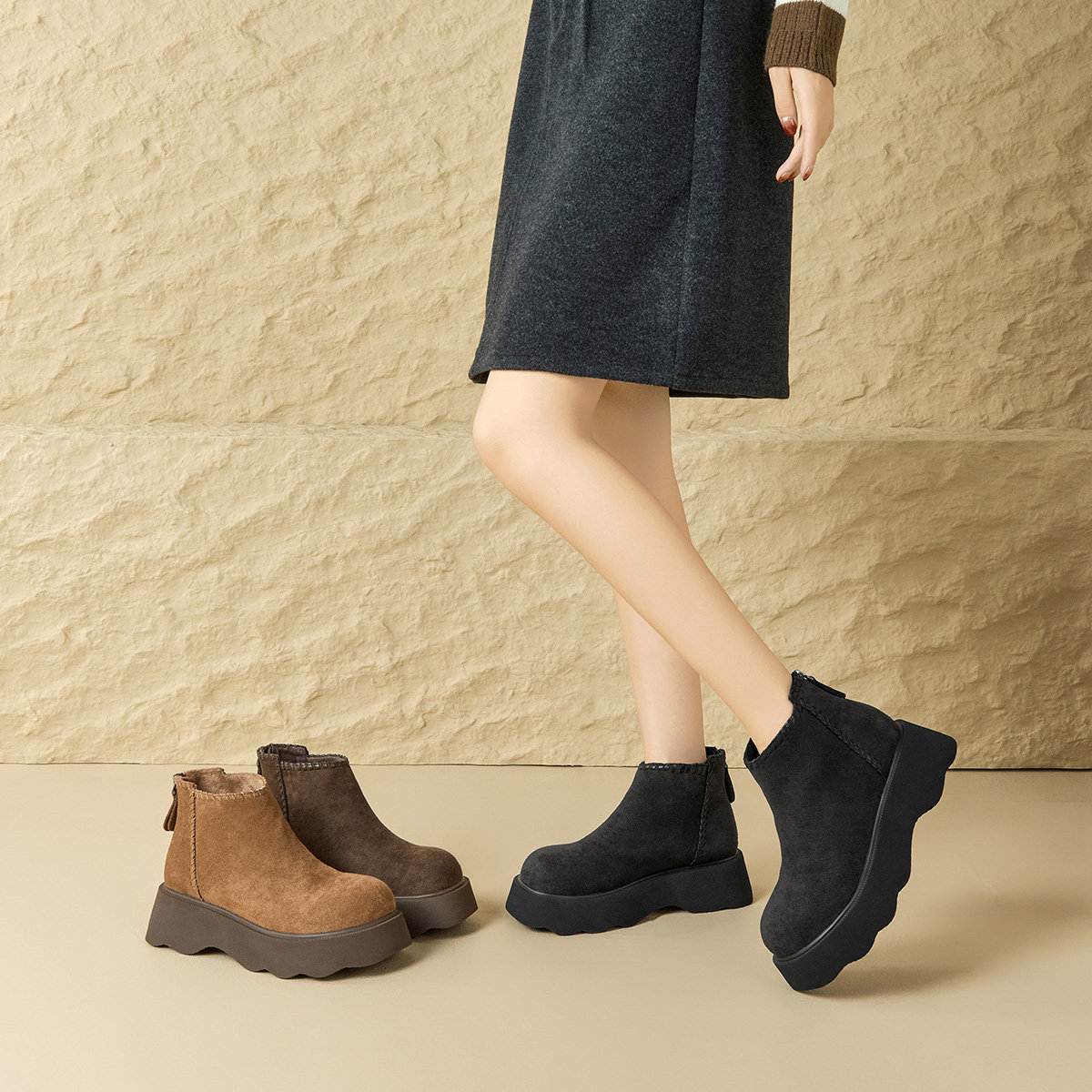 戈美其厚底休闲短靴女2025新款冬季百搭加绒雪地增高加厚保暖棉鞋