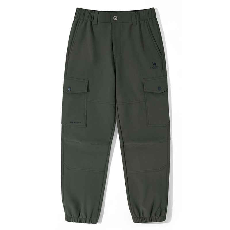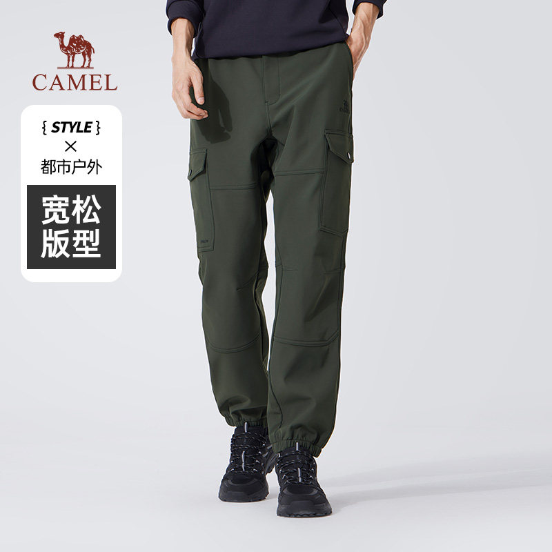 骆驼男装防泼水工装裤男款秋冬季加绒保暖休闲软壳长裤束脚弹力