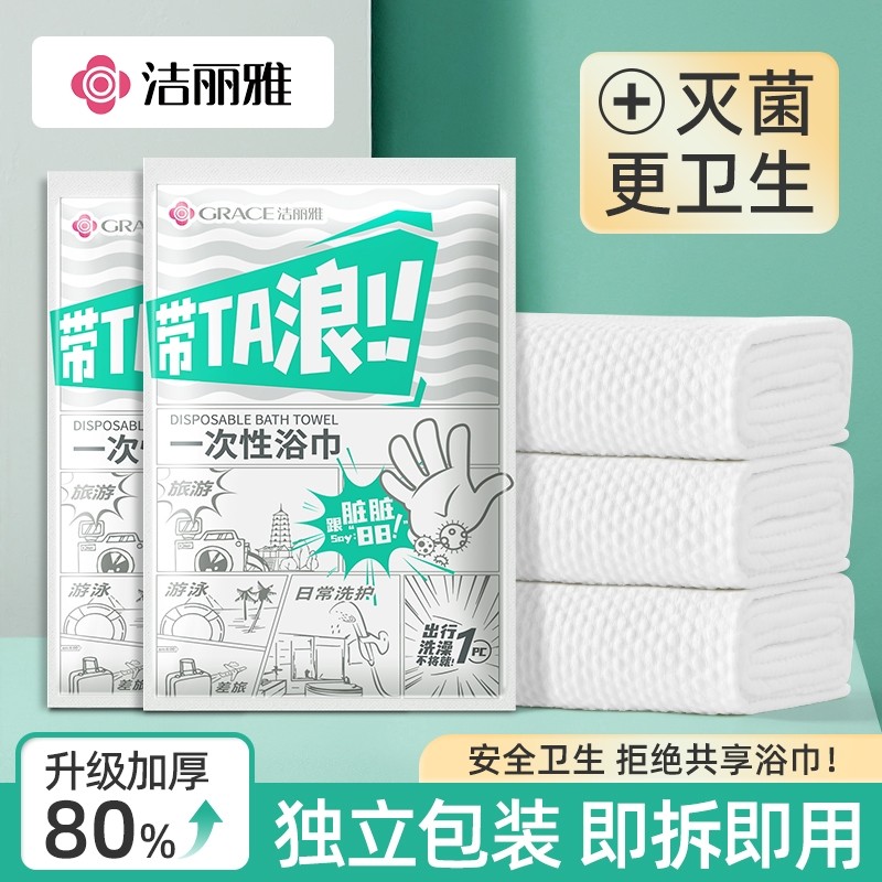 洁丽雅一次性浴巾压缩旅行用品单独包装酒店便携加大加厚压缩毛巾