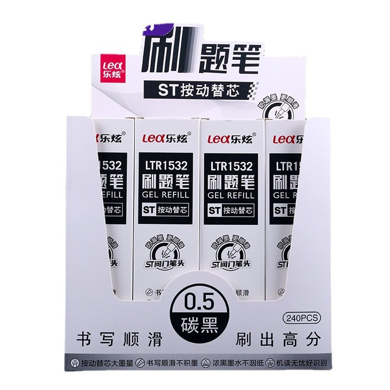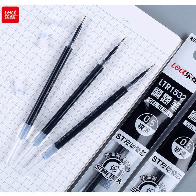 乐炫LTR1532黑色按动中性笔芯ST刷题0.5mm速干独立包装20支装