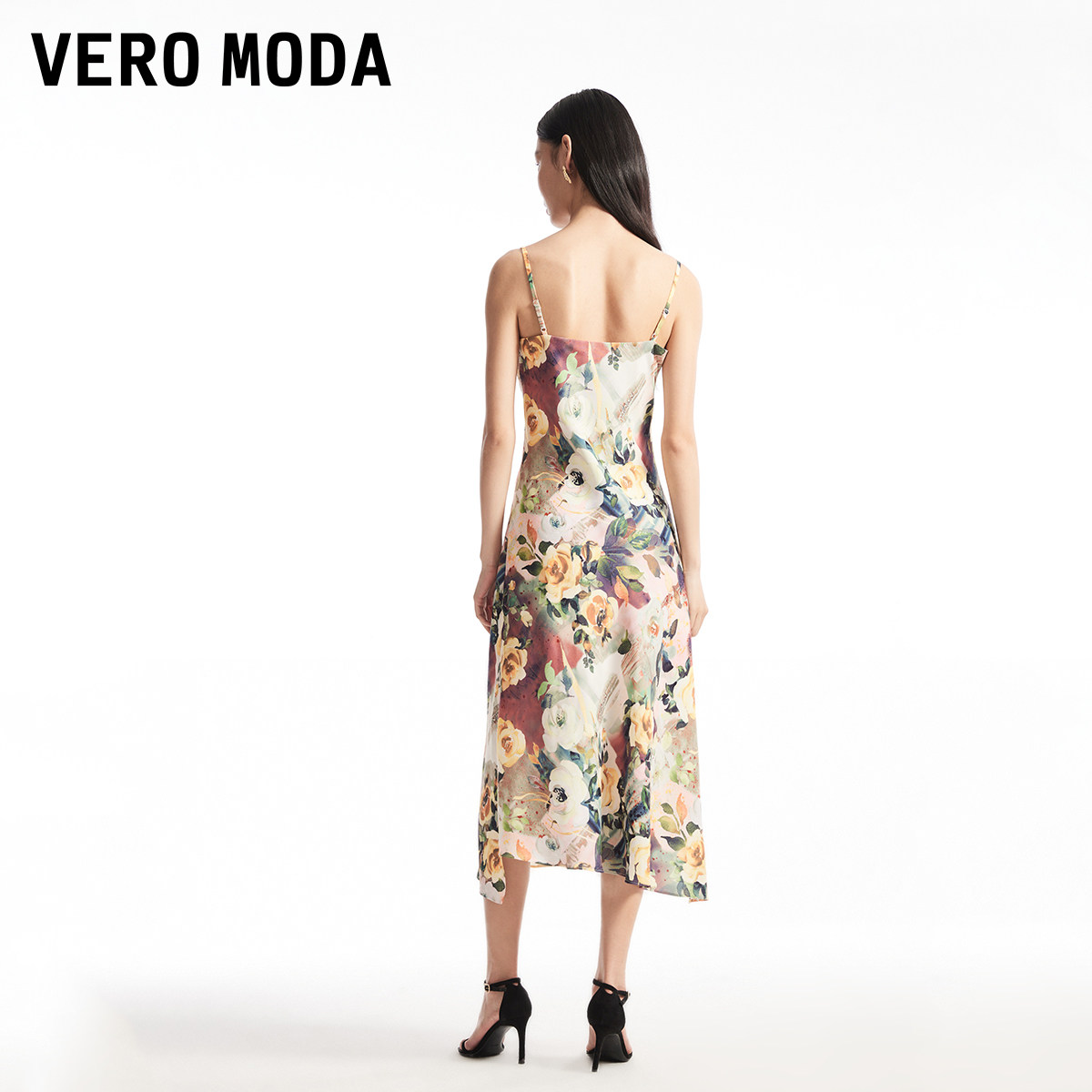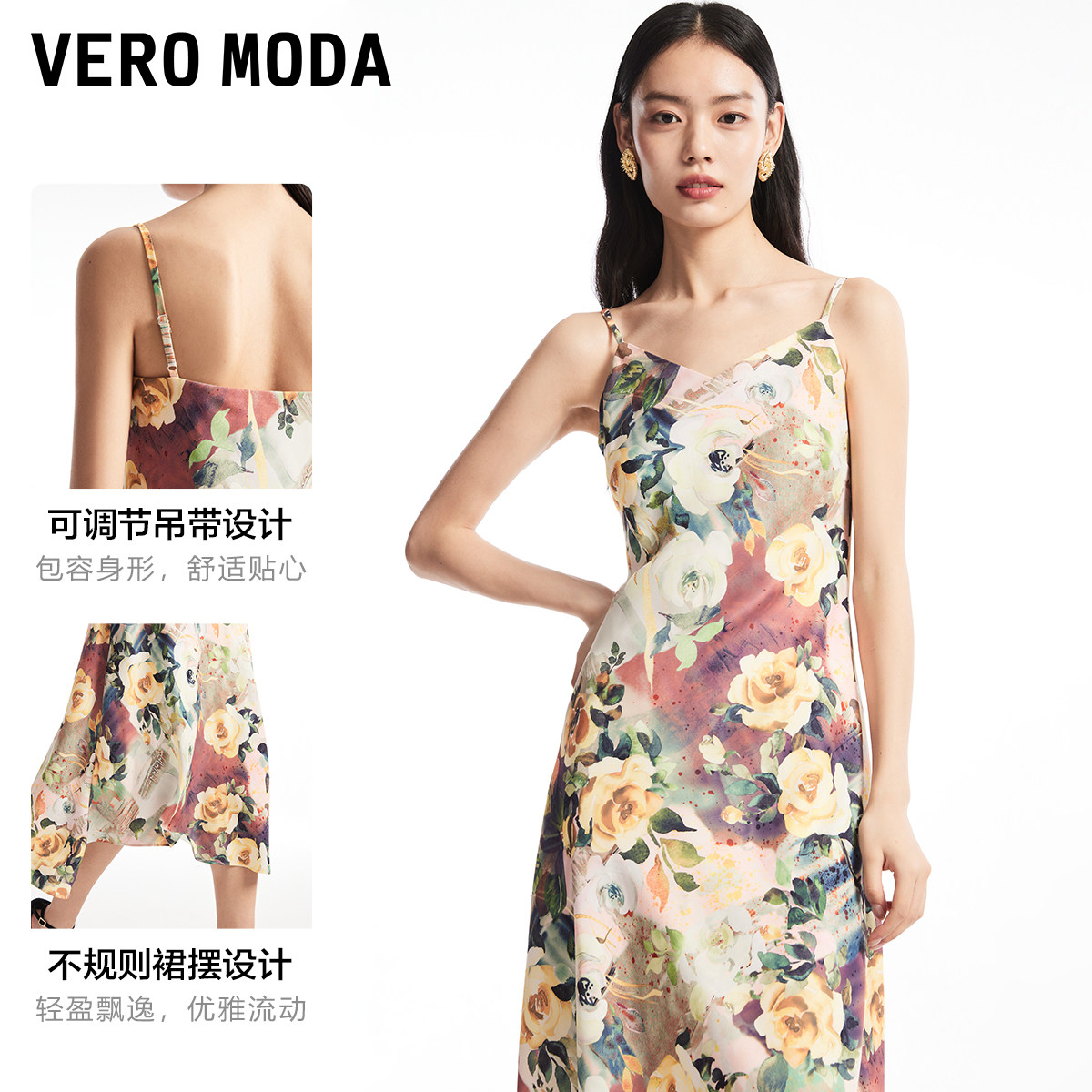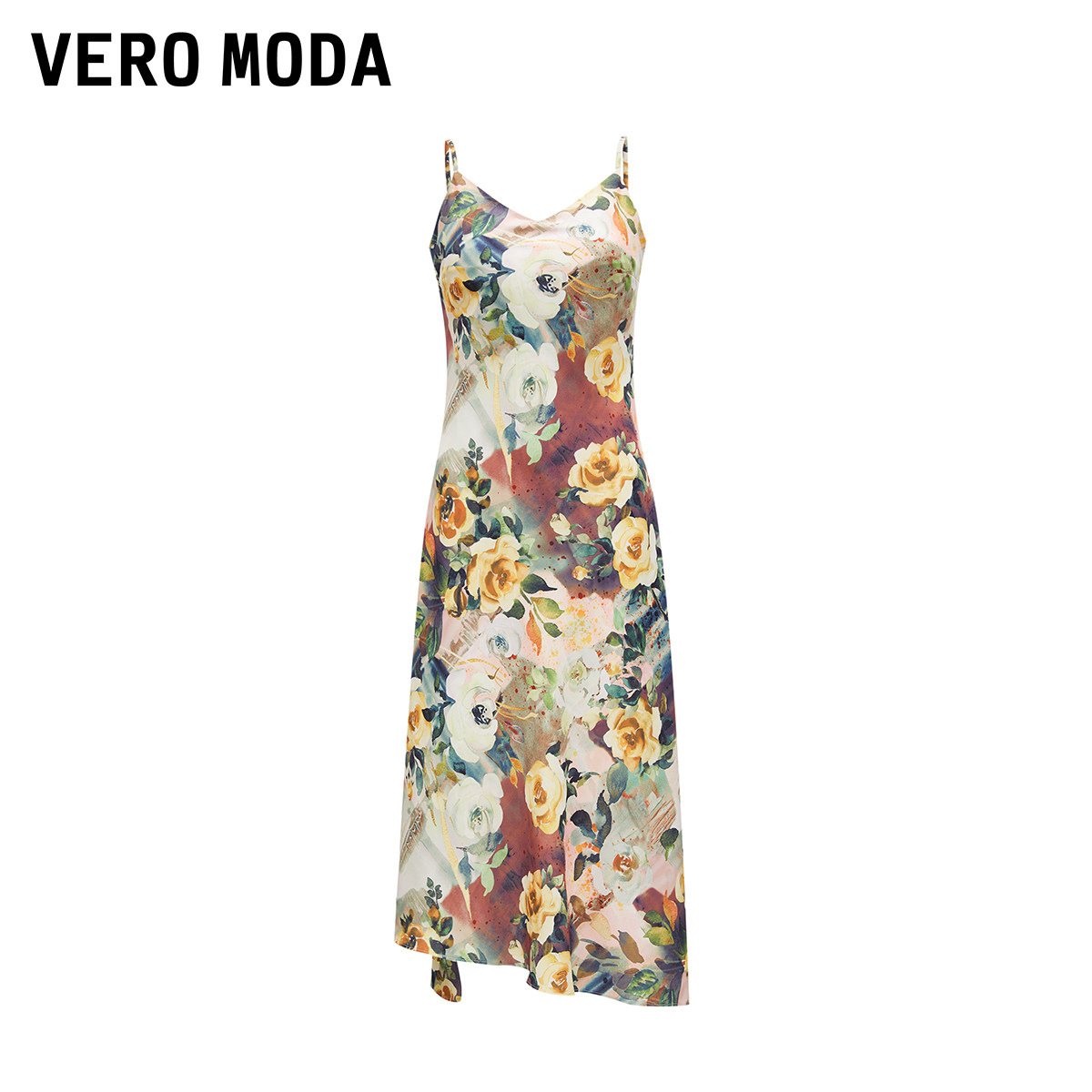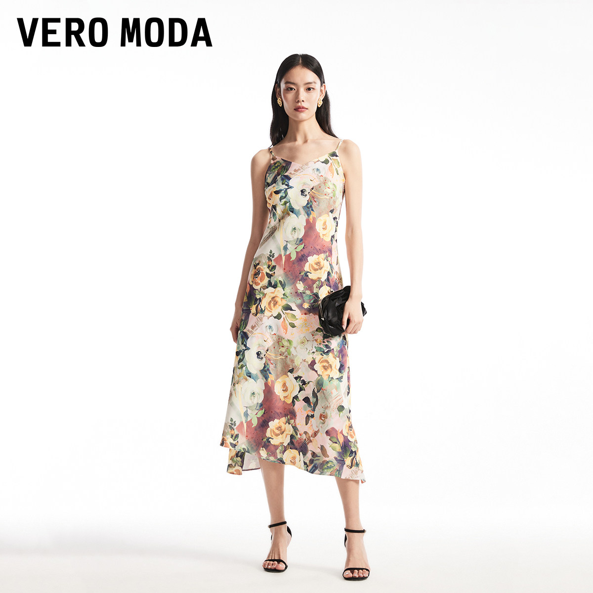 Vero Moda奥莱连衣裙秋冬新款V领A摆印花度假风吊带长裙子流行