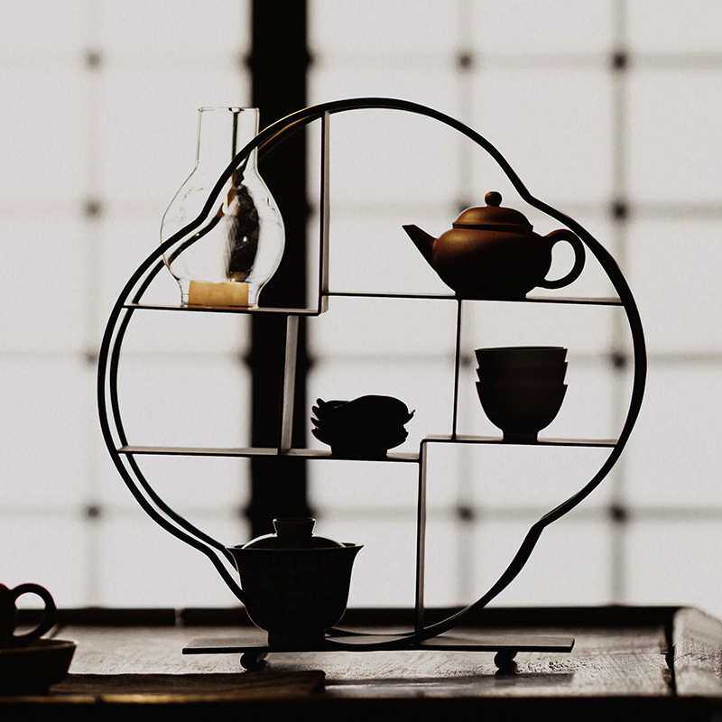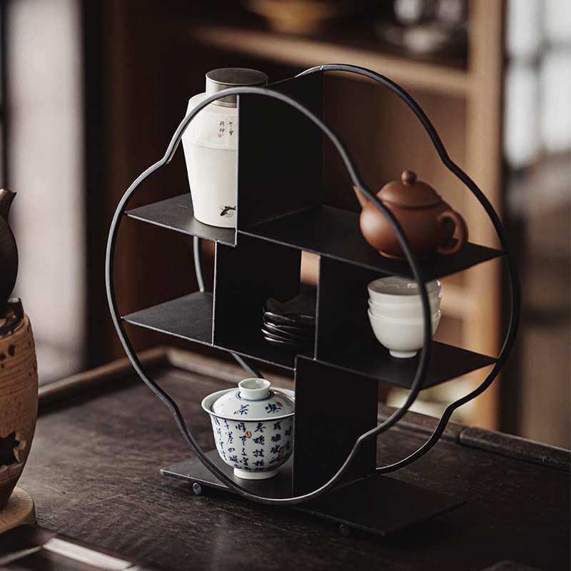 铁艺茶棚茶具茶壶茶杯收纳架新中式家居摆件样板房博古架陈列软装