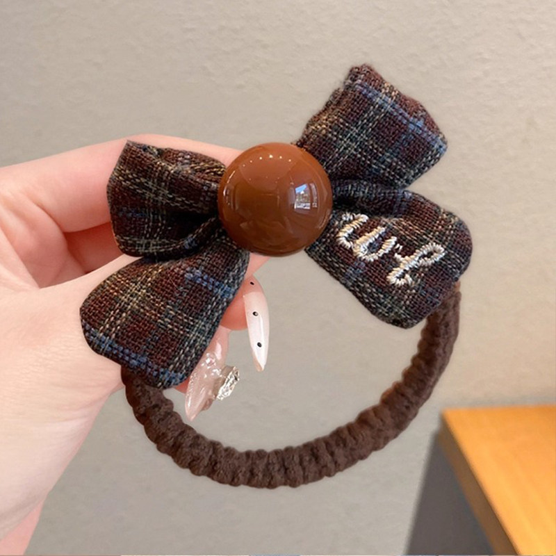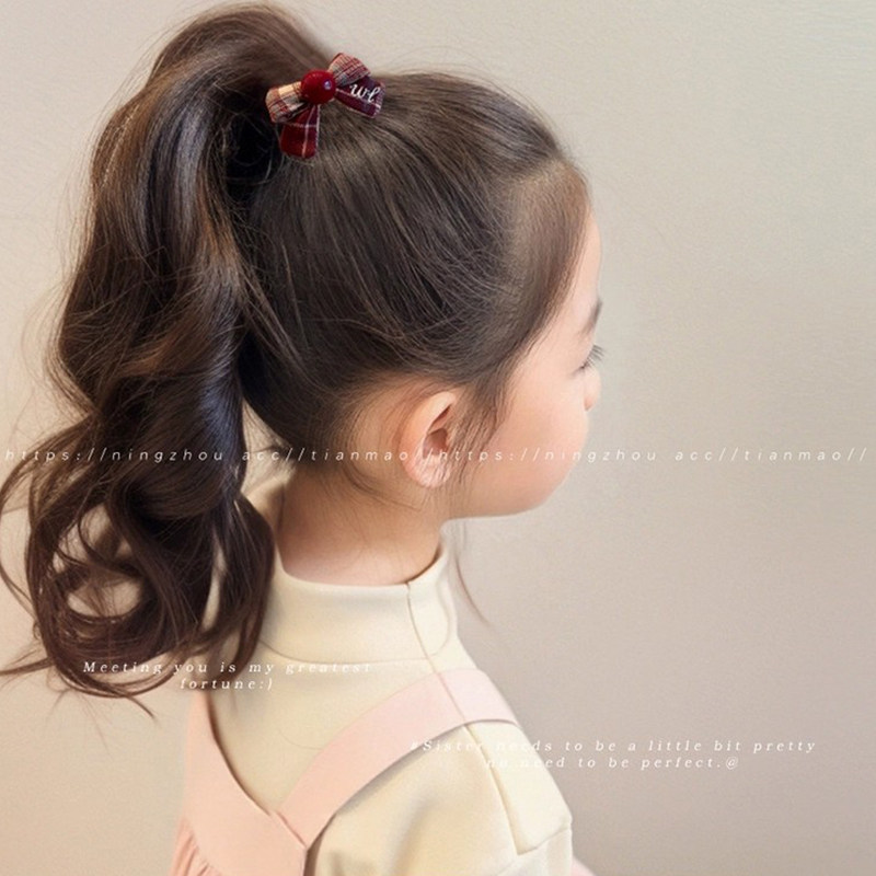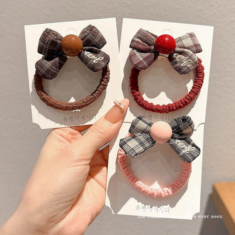 儿童珠珠蝴蝶结发圈韩版格纹扎头发皮筋新款不伤发小女孩马尾发绳