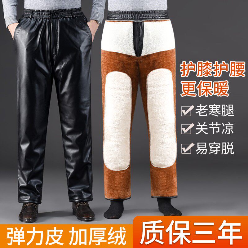 男士皮裤加绒加厚骑行外卖防风防水摩托车保暖冬季爸棉裤方便防寒