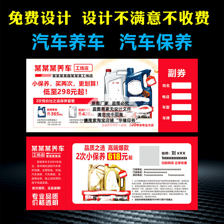 定制作途虎养车汽车美容免费洗车券体验卡设计宣传单印刷广告纸页