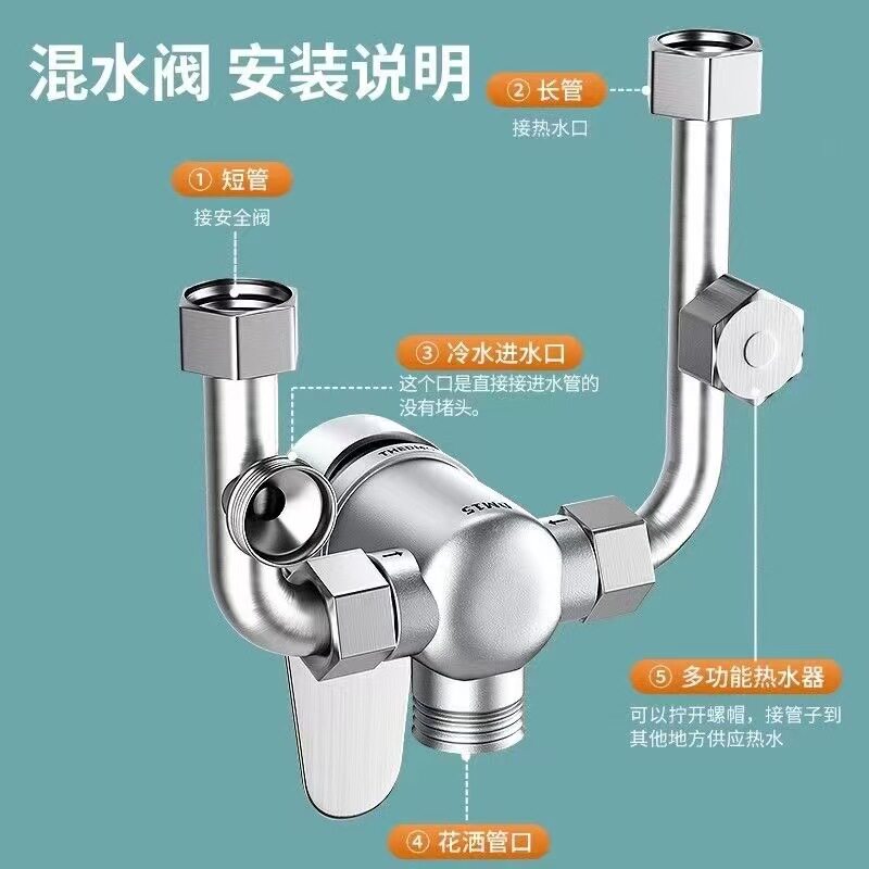热水器太阳能混水阀冷热淋浴水龙头配件明装通用U型开关花洒套装