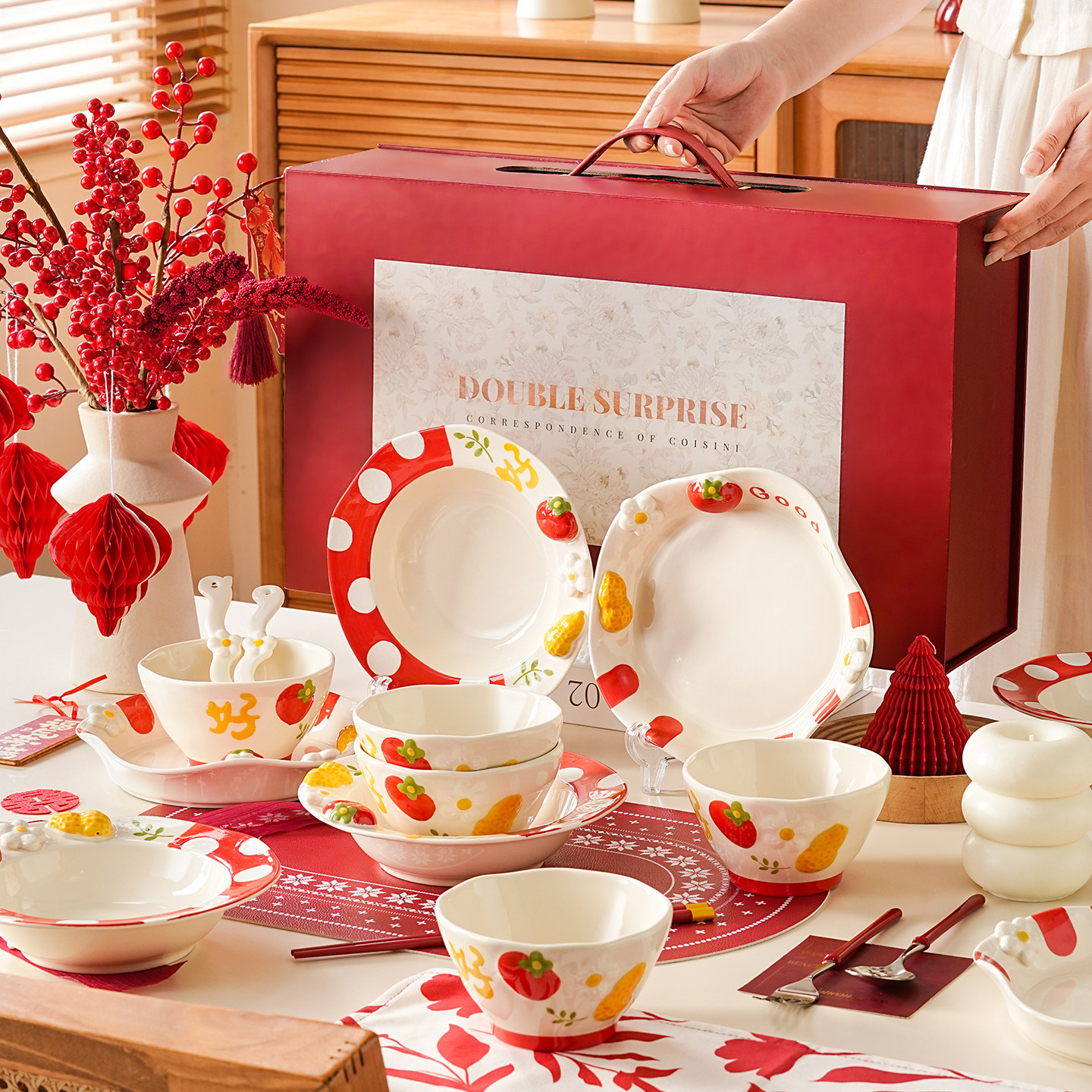 浮雕餐盘子陶瓷碗具漂亮餐具套装碗盘套装家用结婚新婚礼物送新人