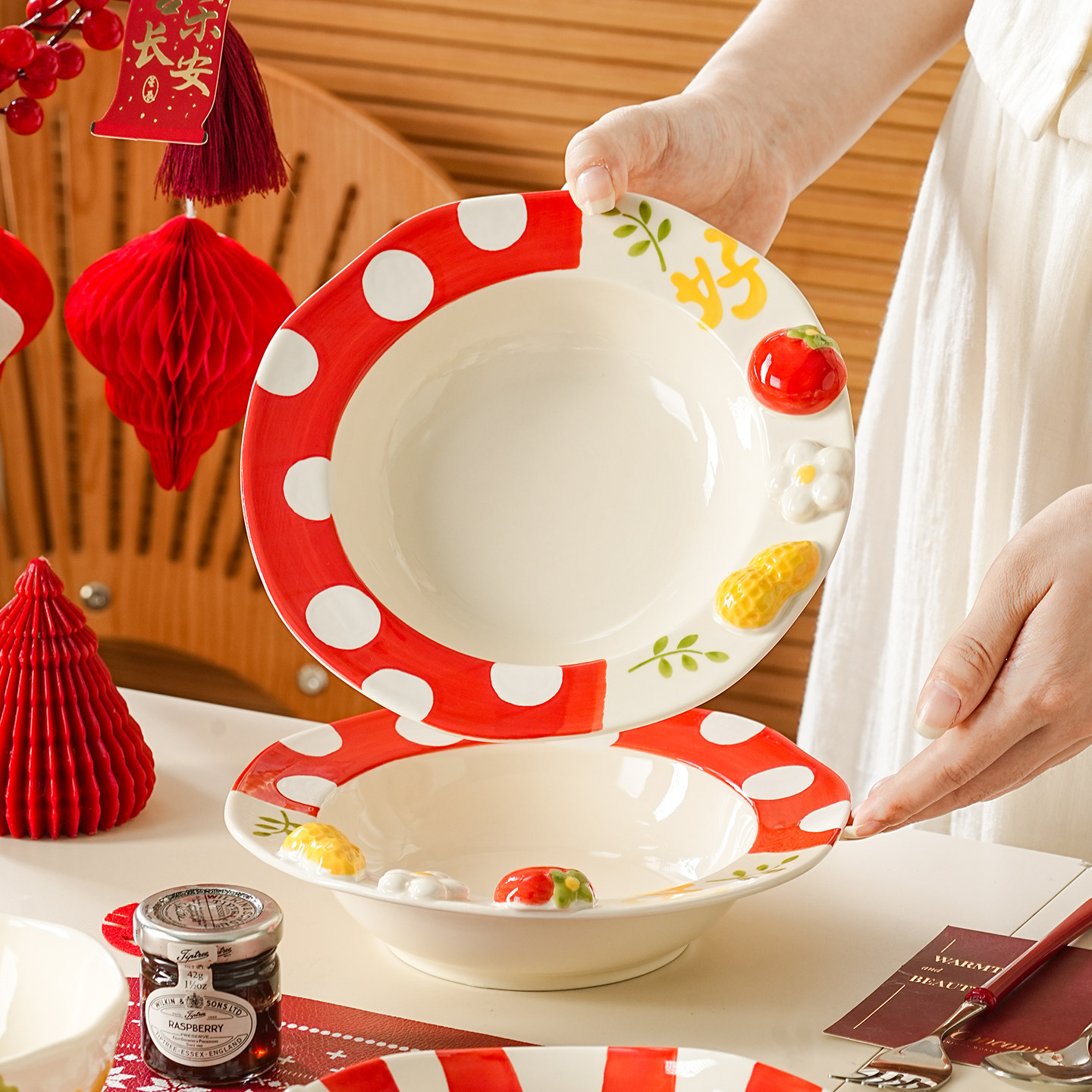 创意ins风高级感荷叶边陶瓷盘意面盘深盘西餐盘水果沙拉碗酸奶碗