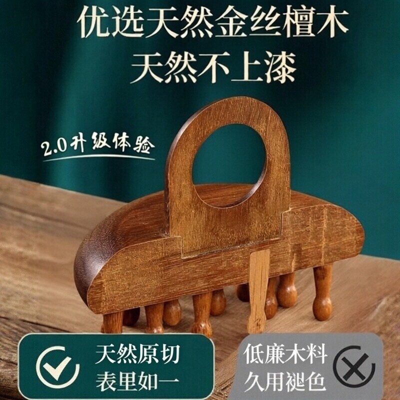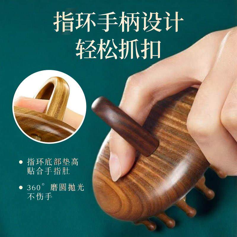 指环头部按摩器檀木梳子天然圆盘头皮经络疏通毛囊养发神器疗梳头