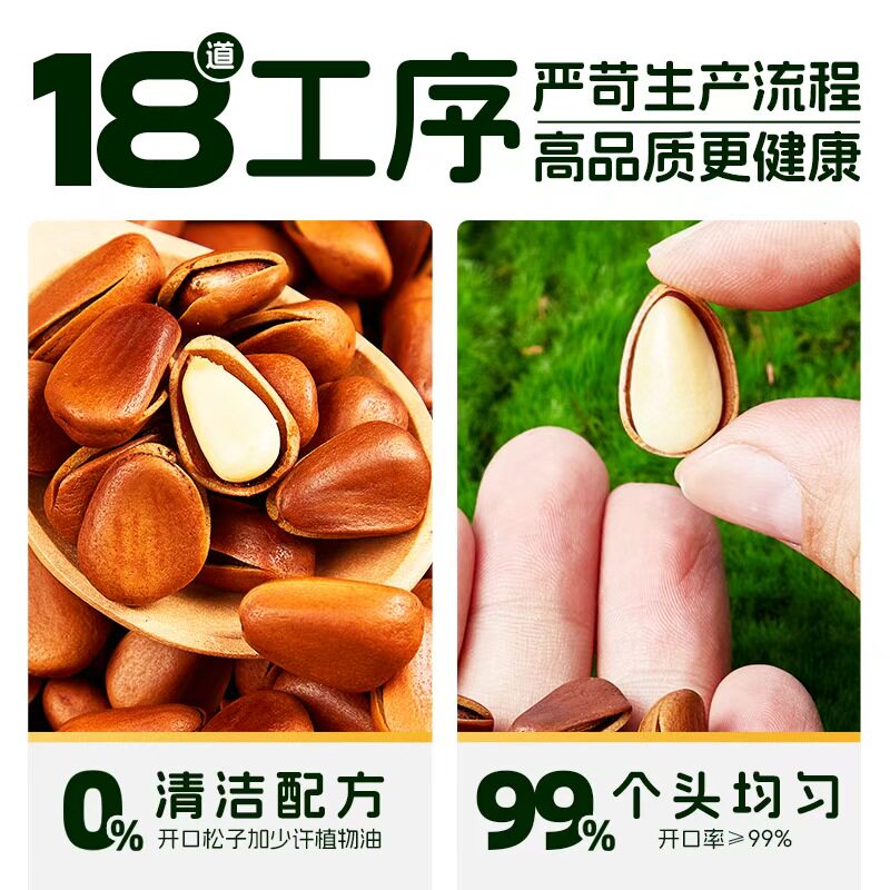 九珍十八品开口松子特大东北特级新货手剥松子坚果零食小吃500g