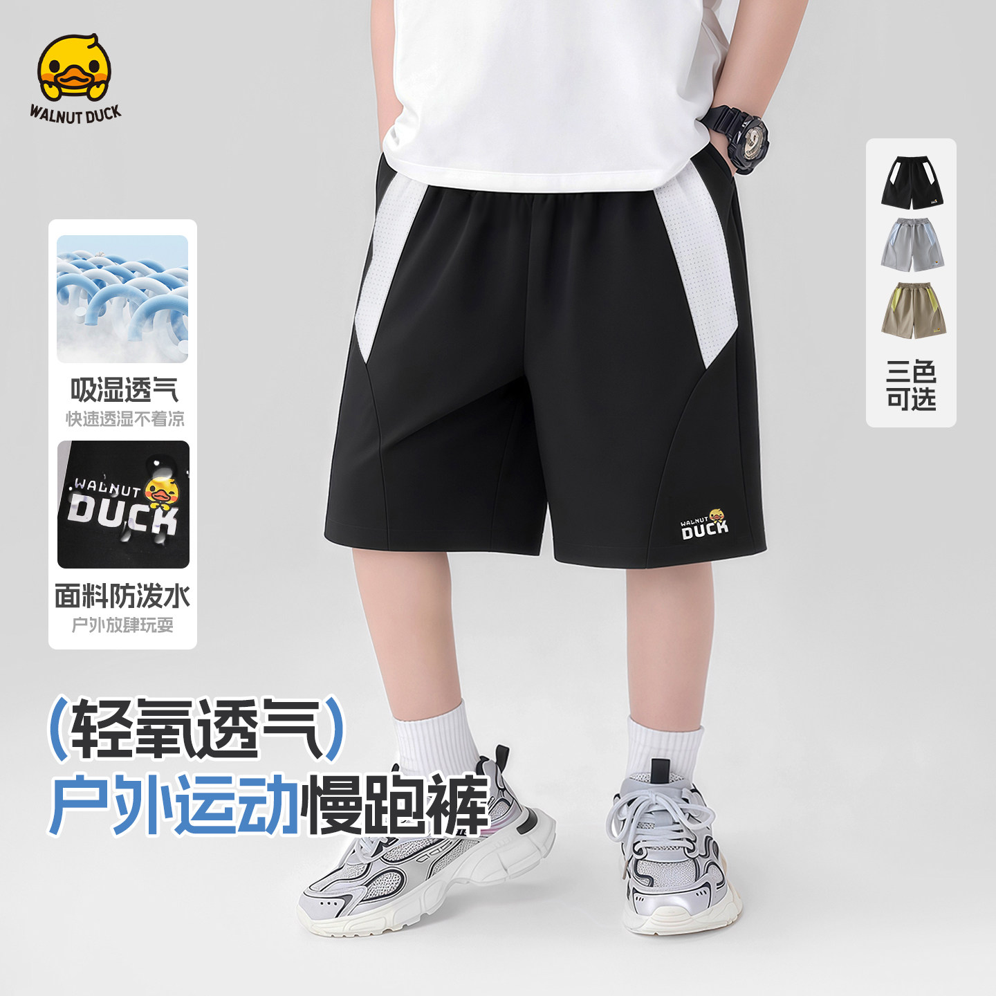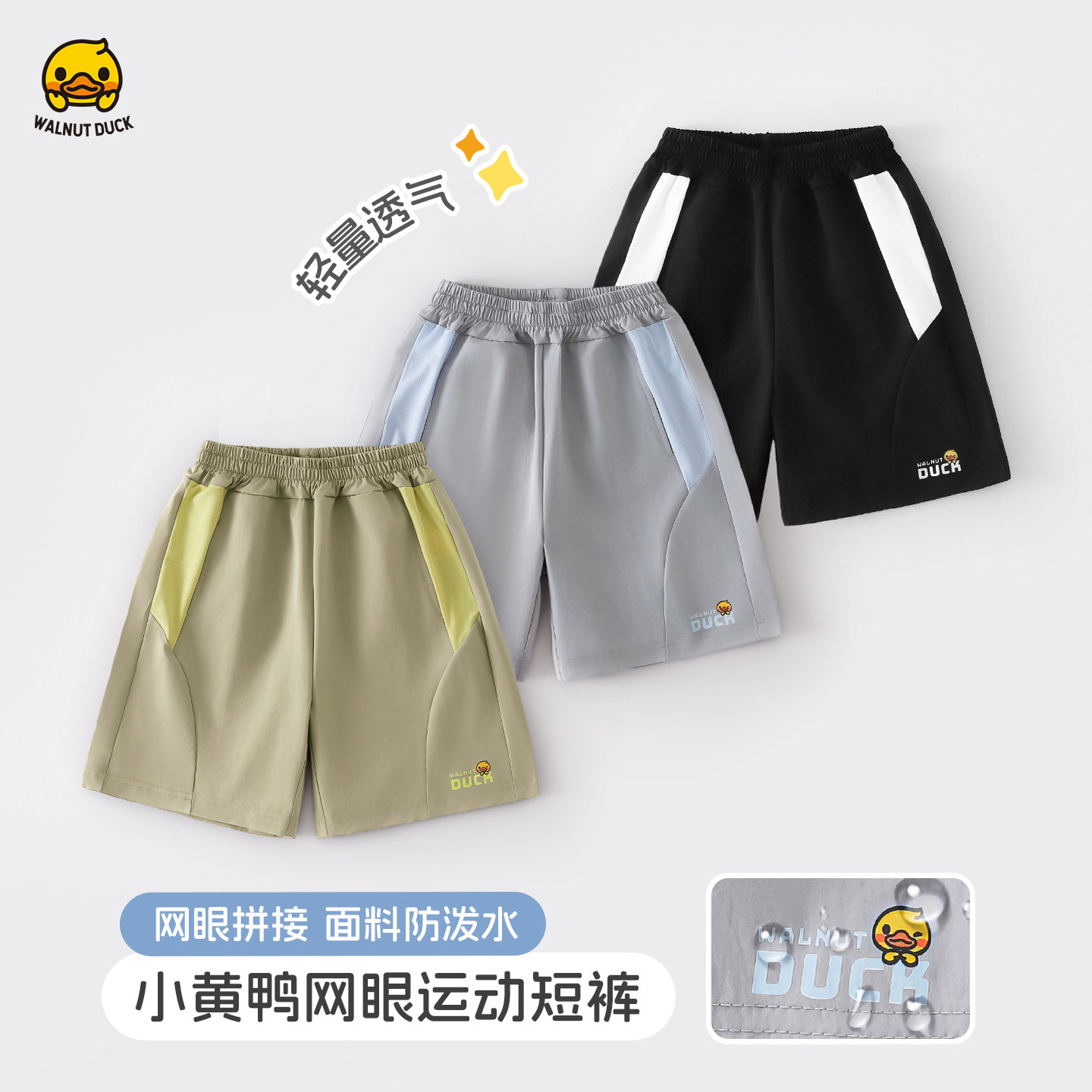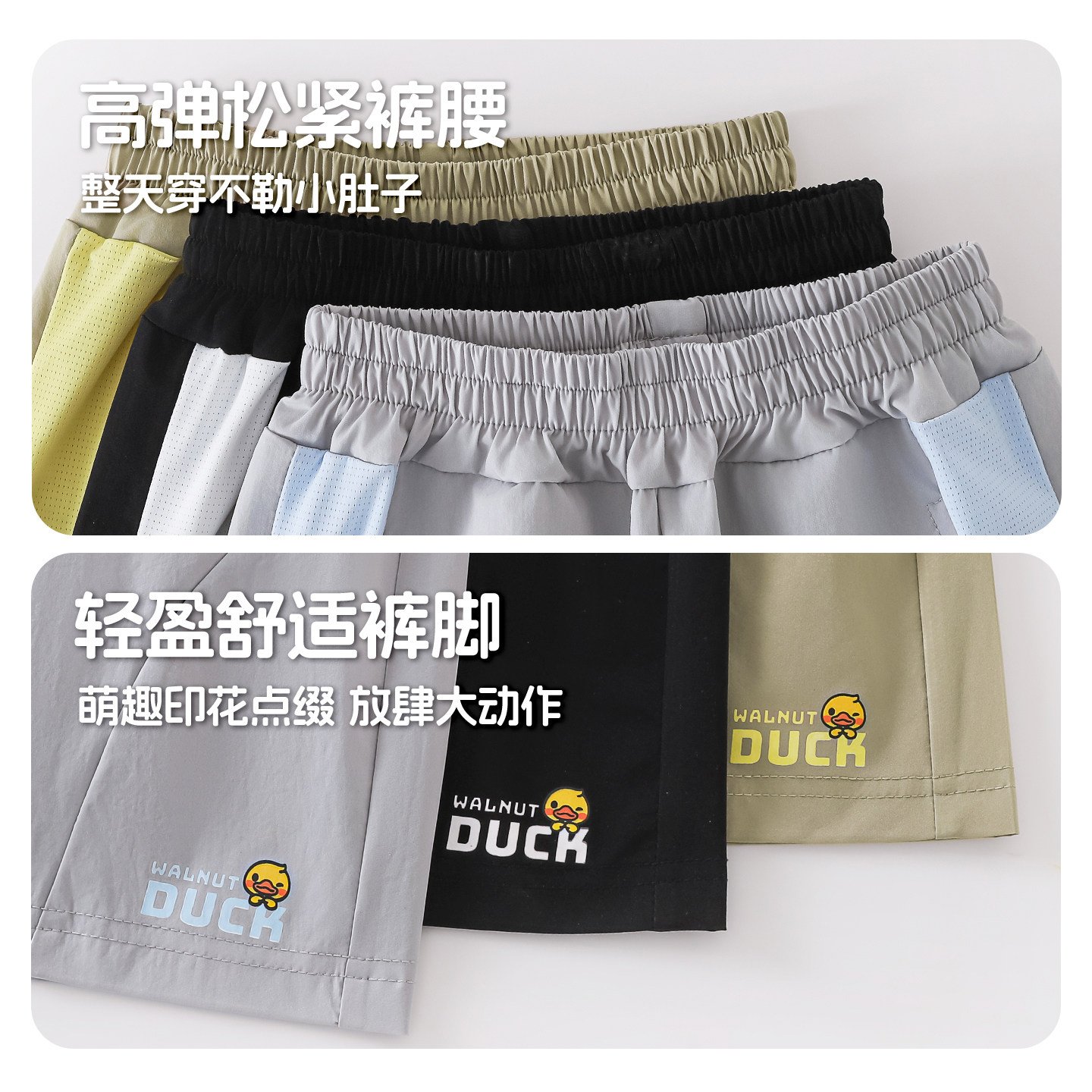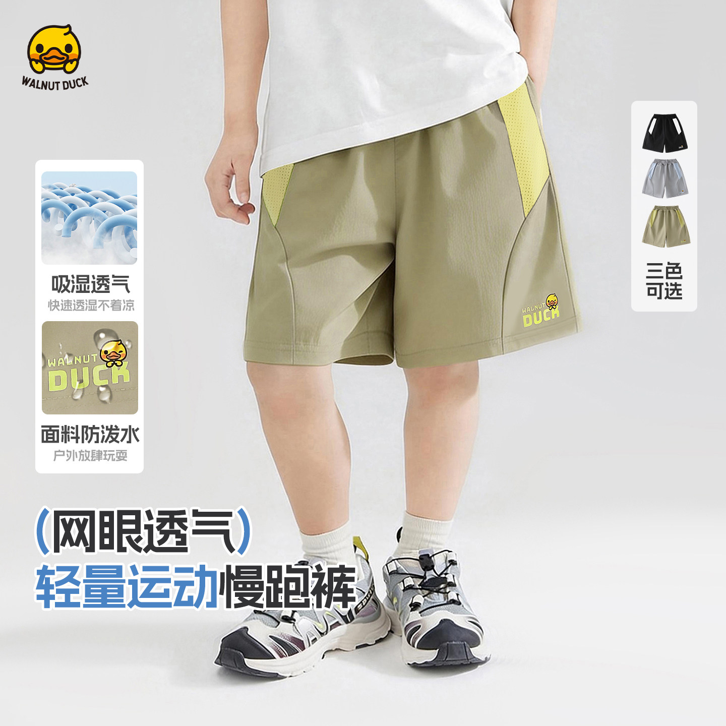 核桃小黄鸭童装透气速干短裤男女儿童户外运动裤五分裤休闲裤子