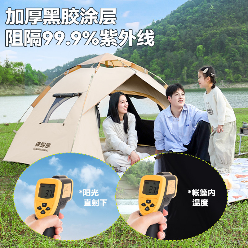 森探熊帐篷户外便捷式折叠露营野营过夜自动黑胶沙滩室内加厚防雨