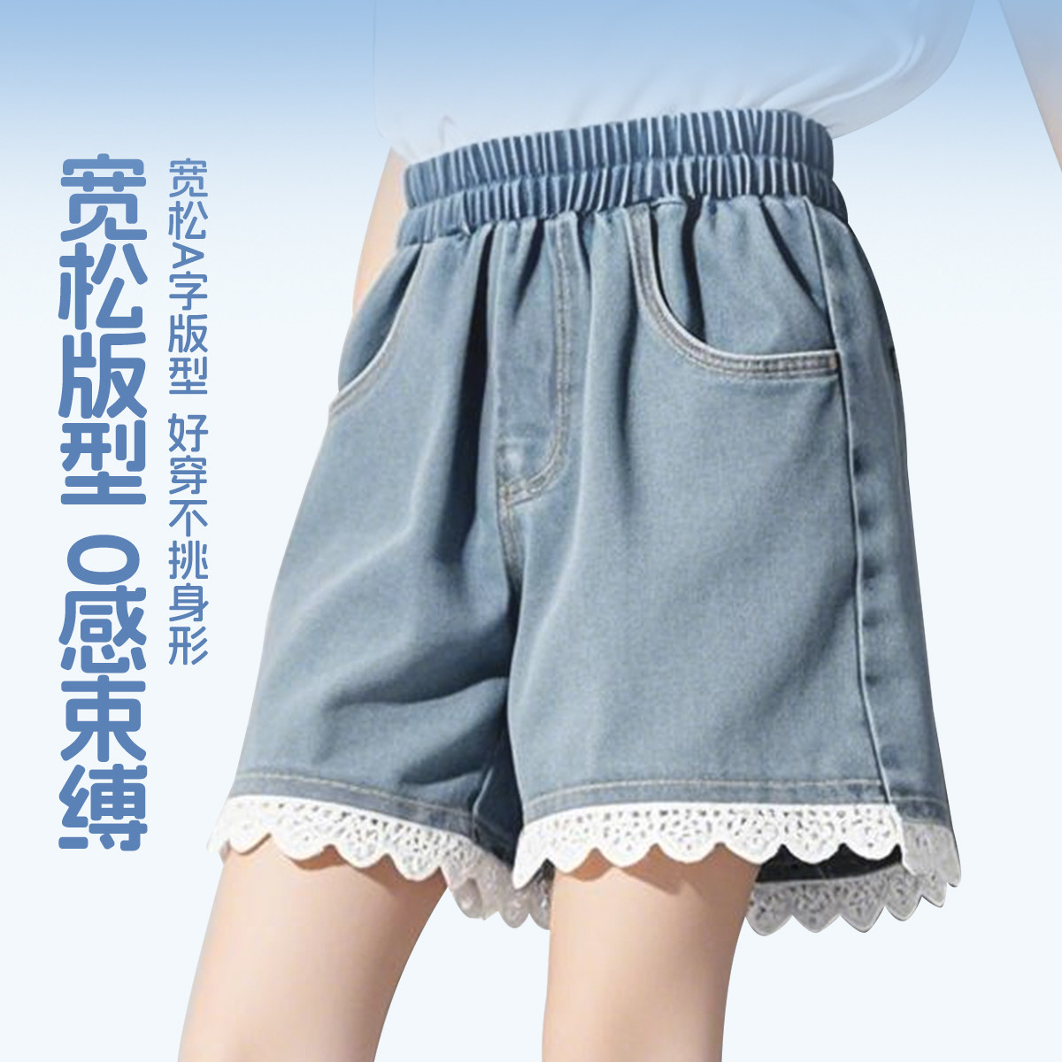 拉夏贝尔联名女童牛仔短裤夏季薄款2025新款五分中裤儿童夏装裤子