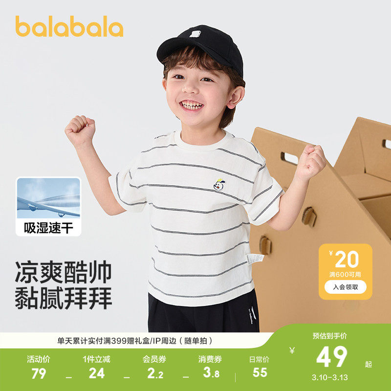 巴拉巴拉童装儿童t恤男童短袖女童宝宝上衣轻薄新款夏季吸湿速干