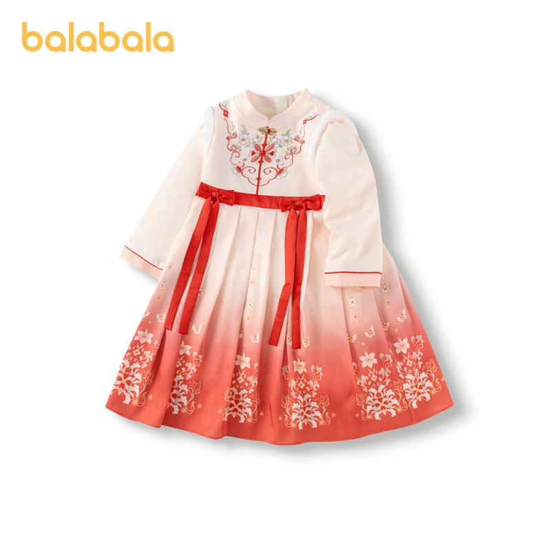 巴拉巴拉女童汉服改良襦裙国风连衣裙冬新款裙子