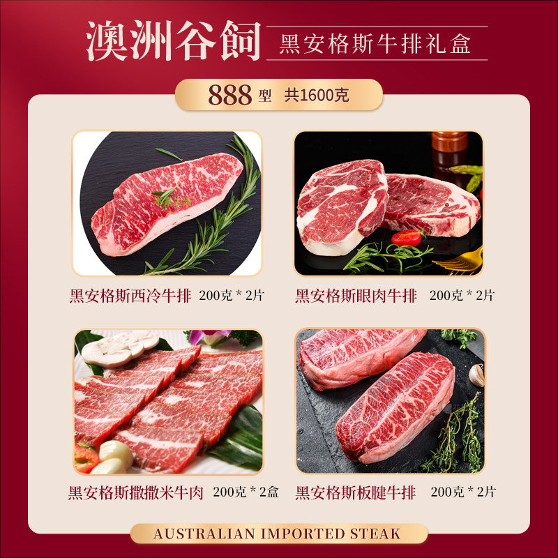 澳洲安格斯雪花牛排礼盒888型西冷眼肉高端年货商务礼品可发礼卡