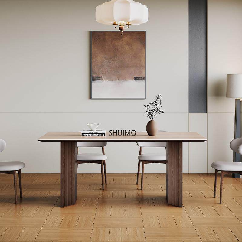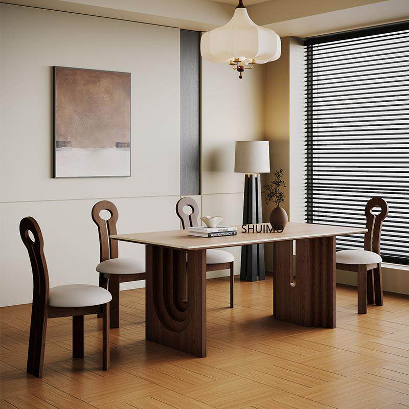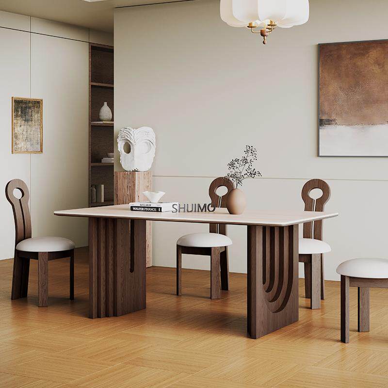 法式奶油复古风实木德利丰岩板家用黑色圆形饭桌胡桃色旋涡桌椅子
