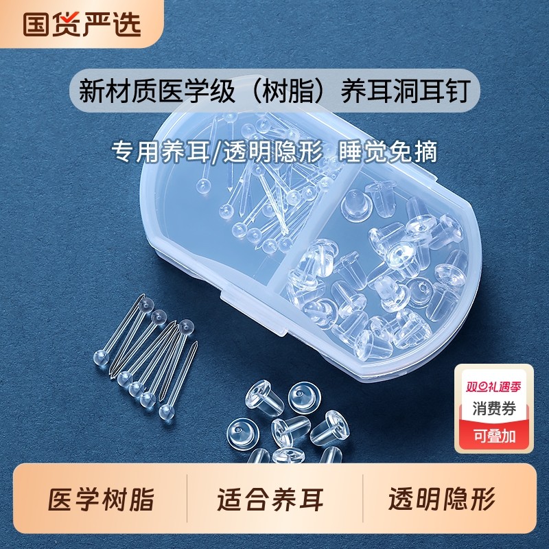 树脂养耳洞耳钉透明隐形耳棒耳骨钉硅胶耳堵学生防堵
