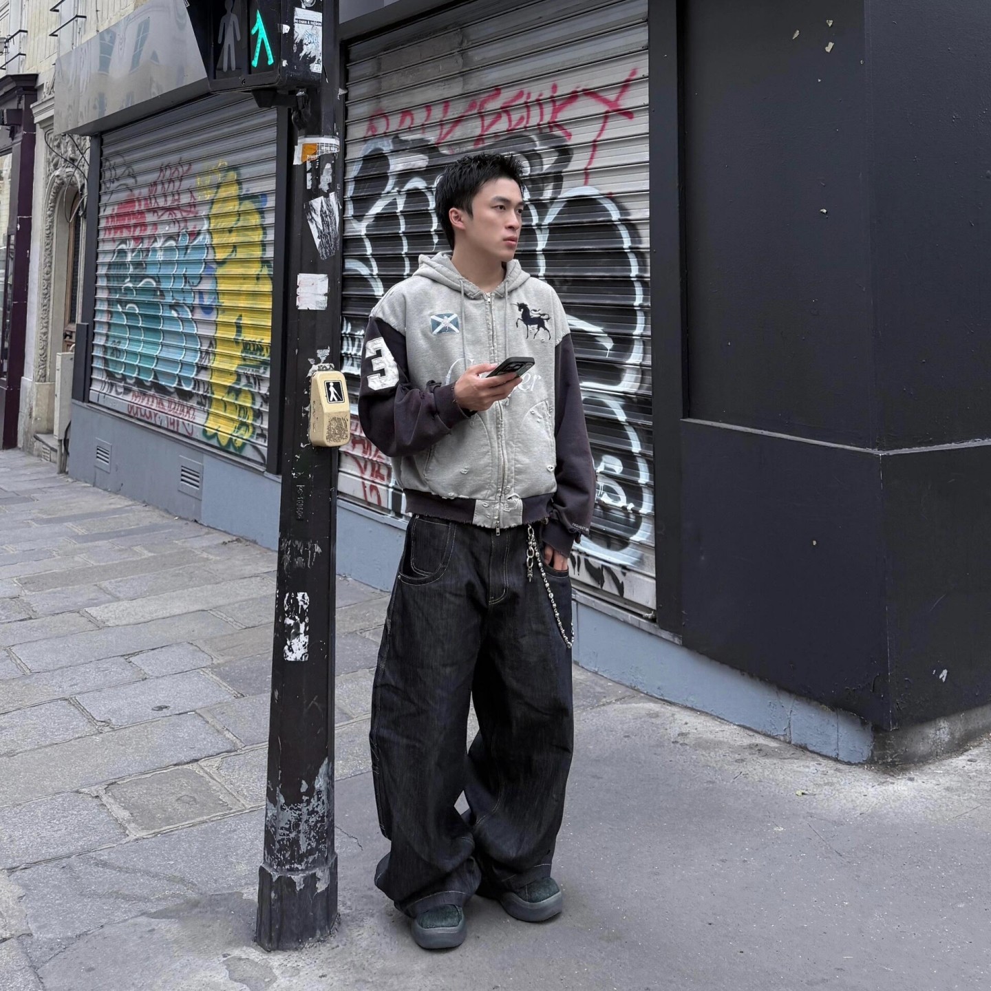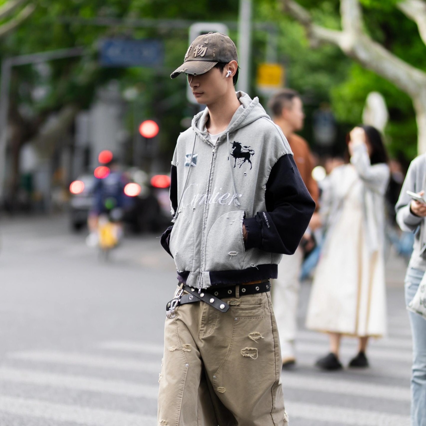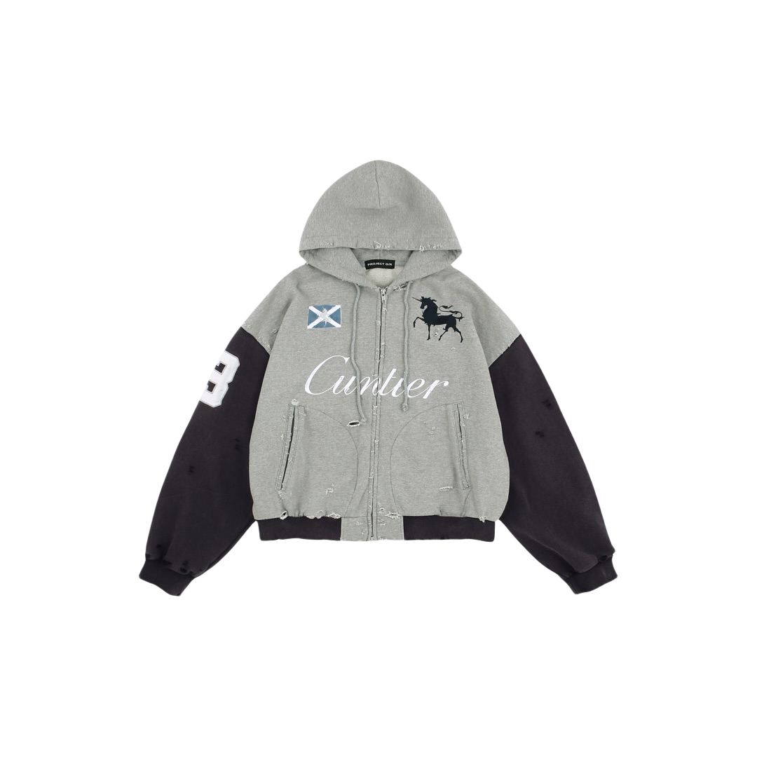 GRAILZ PROJECT GR美式水洗做旧破坏刺绣战马拉链连帽衫卫衣外套