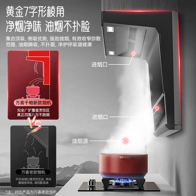 万喜-喜豆叮DS3顶侧双吸油烟机家用厨房大吸力挥手智控自动热清洗