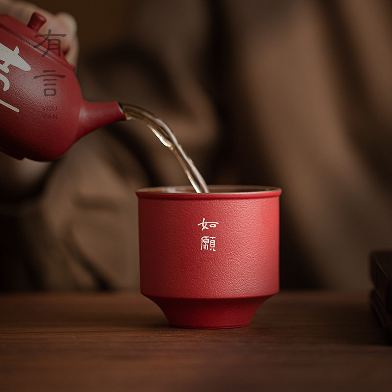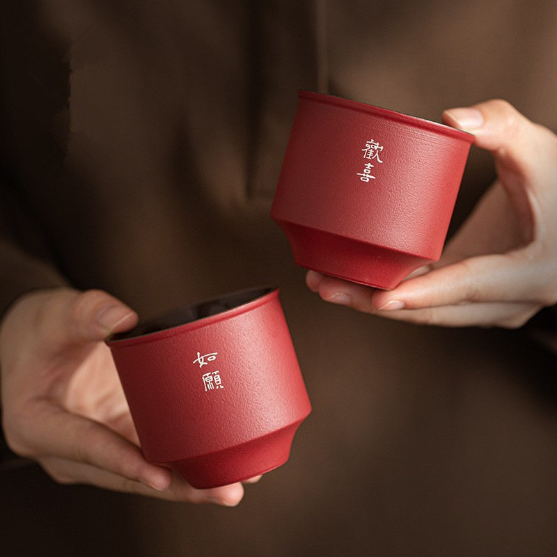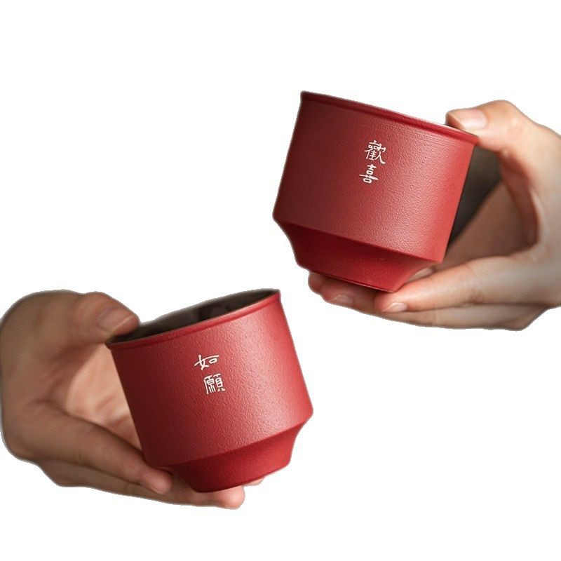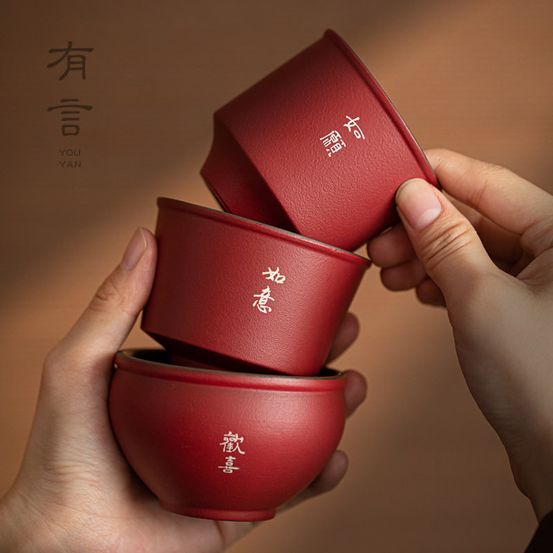 茶杯陶瓷功夫主人杯品茗单杯高档个人专用精致茶盏敬茶杯红色一对