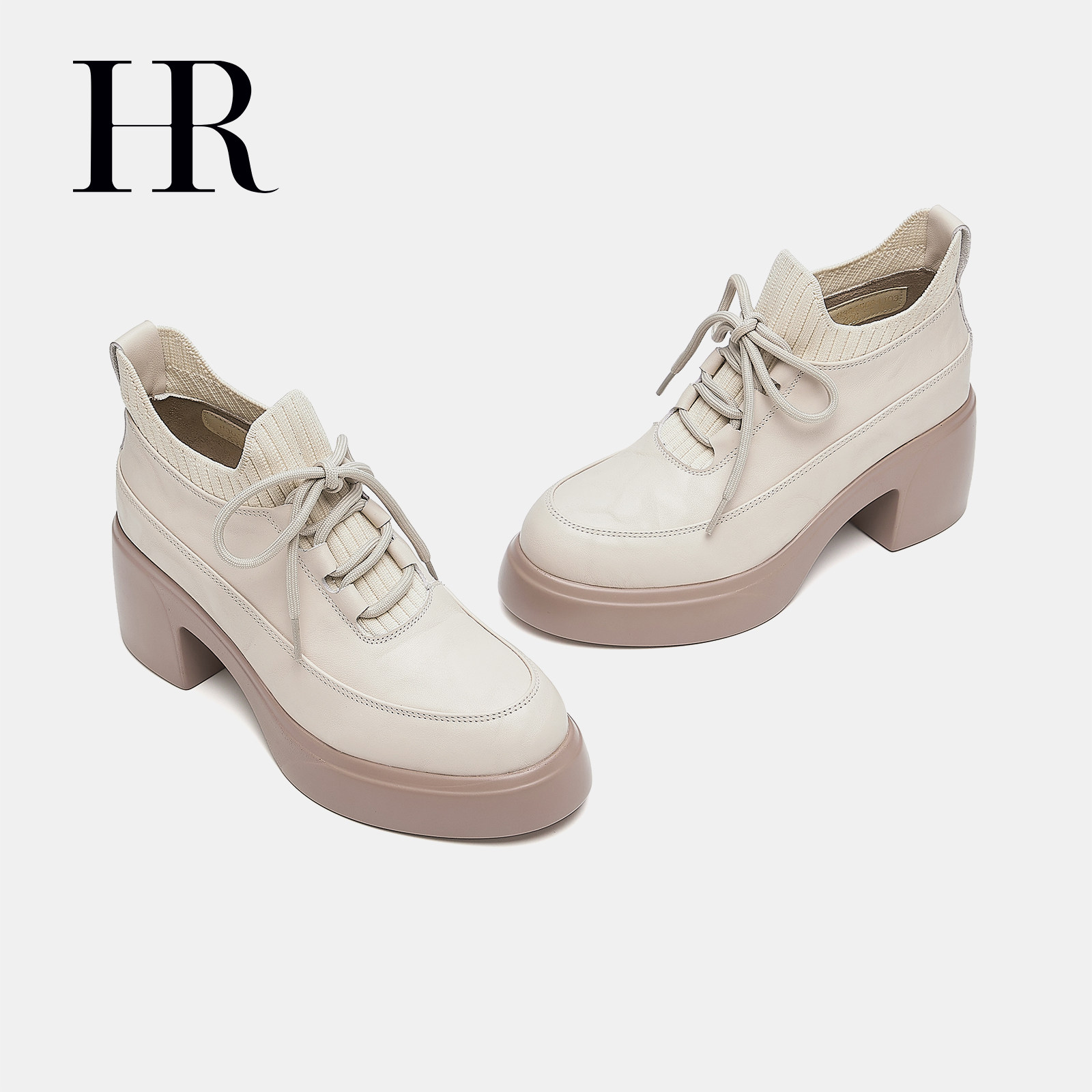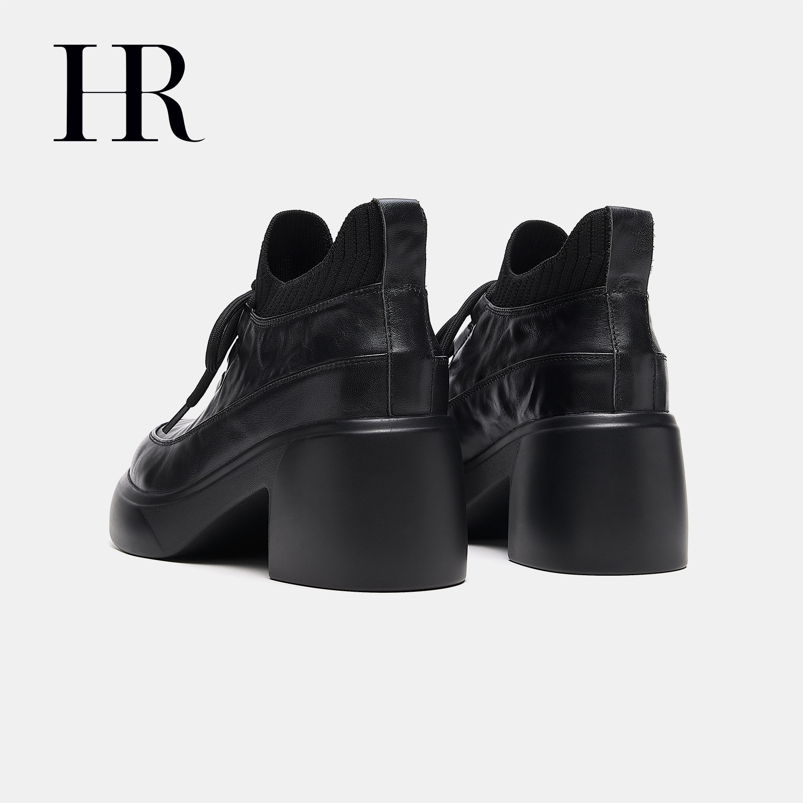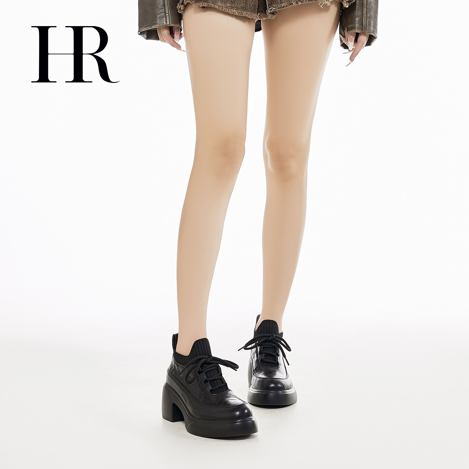 HR赫莲娜女鞋子2026弹力套筒时装靴粗跟时尚复古系带短靴增高百搭