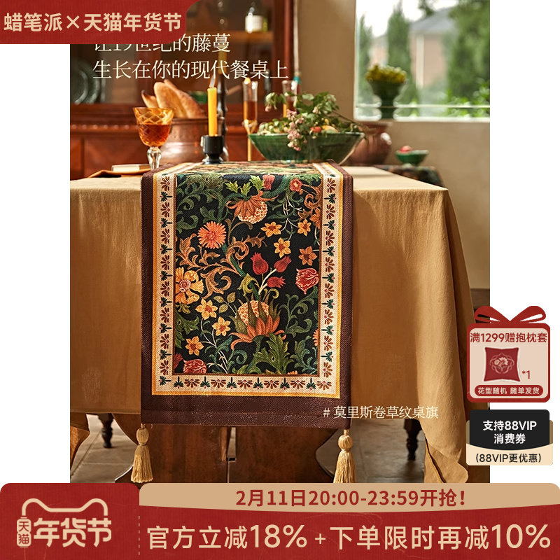 蜡笔派卷草桌旗餐桌布英式复古斗柜茶几盖布高级感轻奢简约高端W