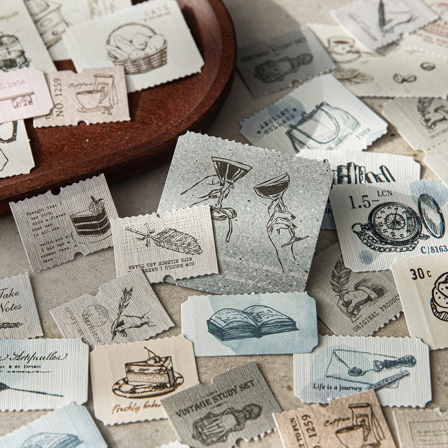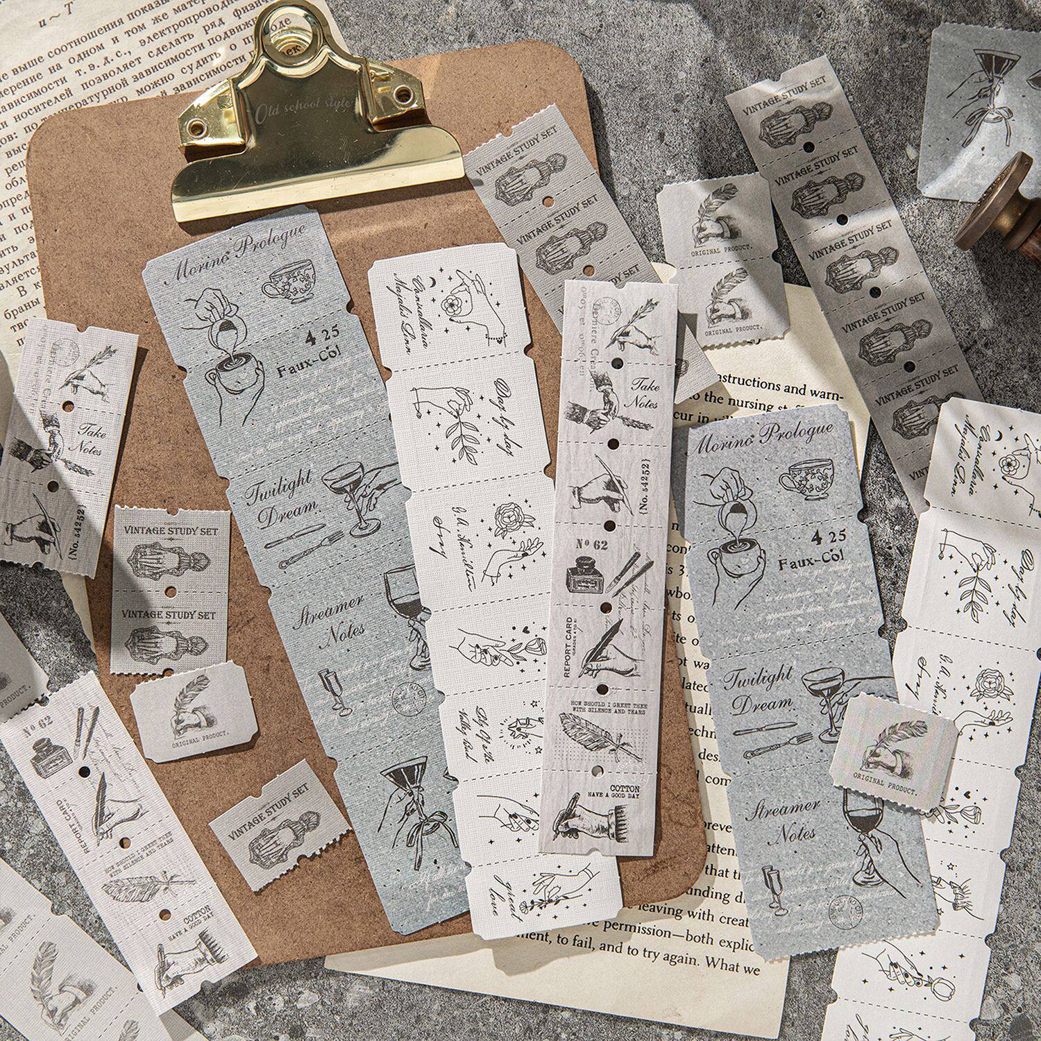 标签收藏夹系列长条贴纸包 复古可撕素材手账DIY装饰小物拼贴画