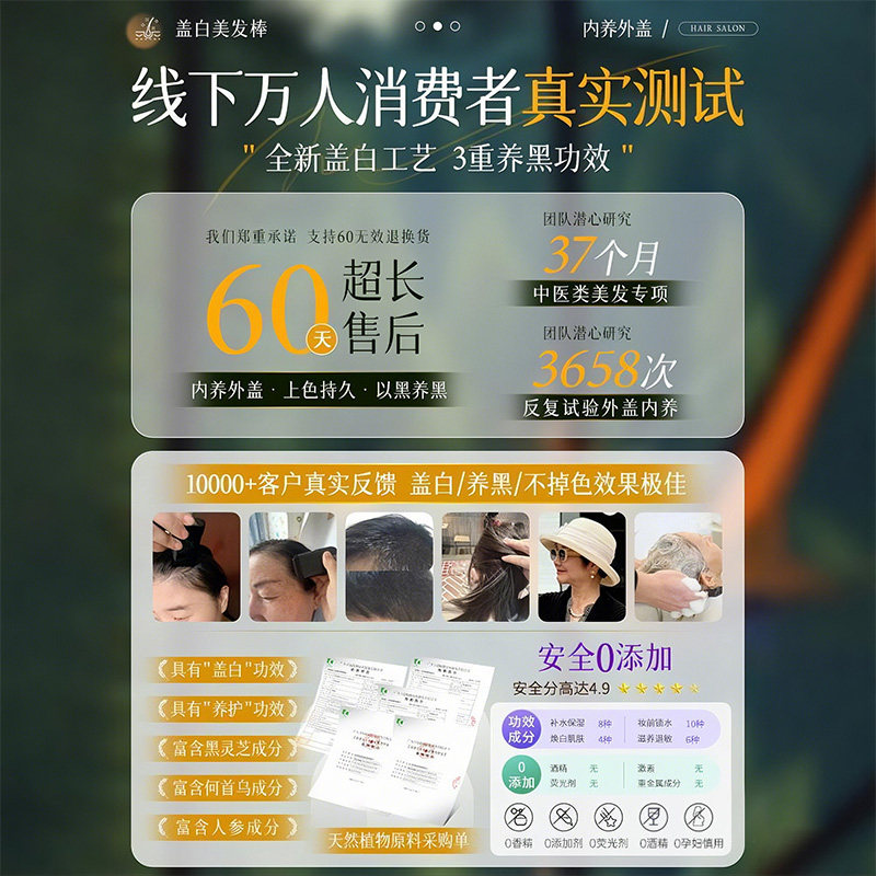 染发笔棒遮盖白发神器一次性纯植物不掉色美发棒补染发根黑发不沾