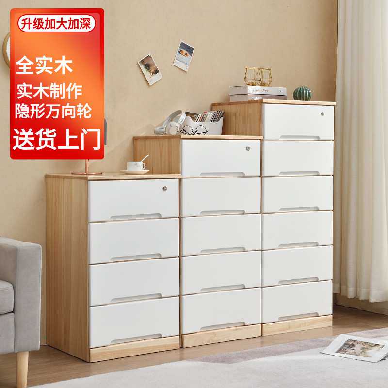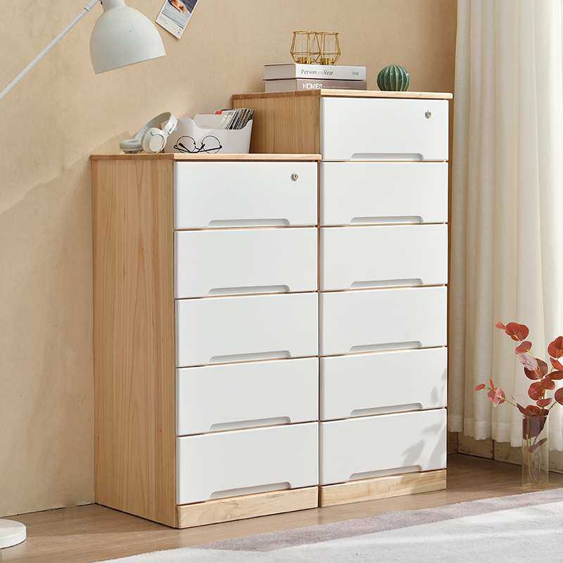 实木五斗柜简约带锁抽屉式原木储物柜50cm宽经济型收纳柜整装家具