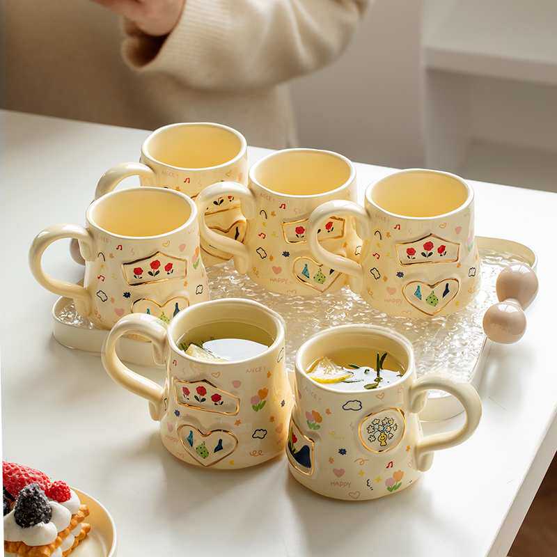 水杯家用套装陶瓷杯子待客喝水杯客厅高颜值马克杯女茶具杯具茶杯