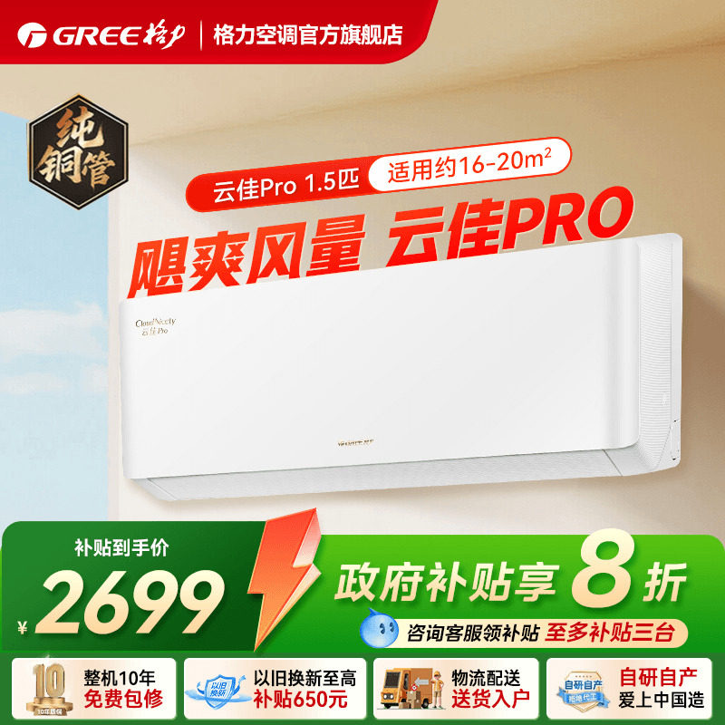【25年新款】格力空调正1.5匹1匹新一级变频挂机云佳Pro官方旗舰