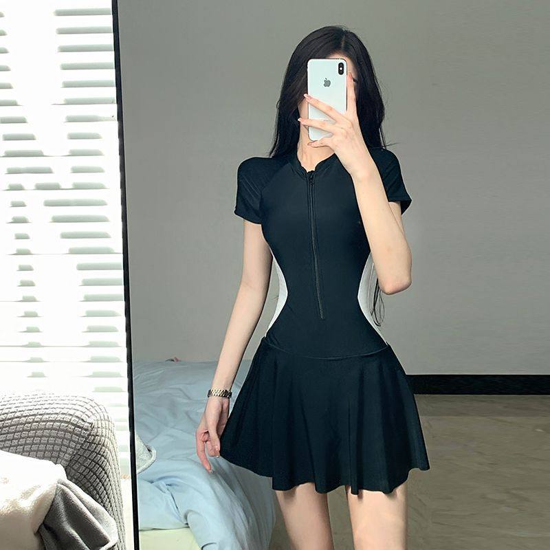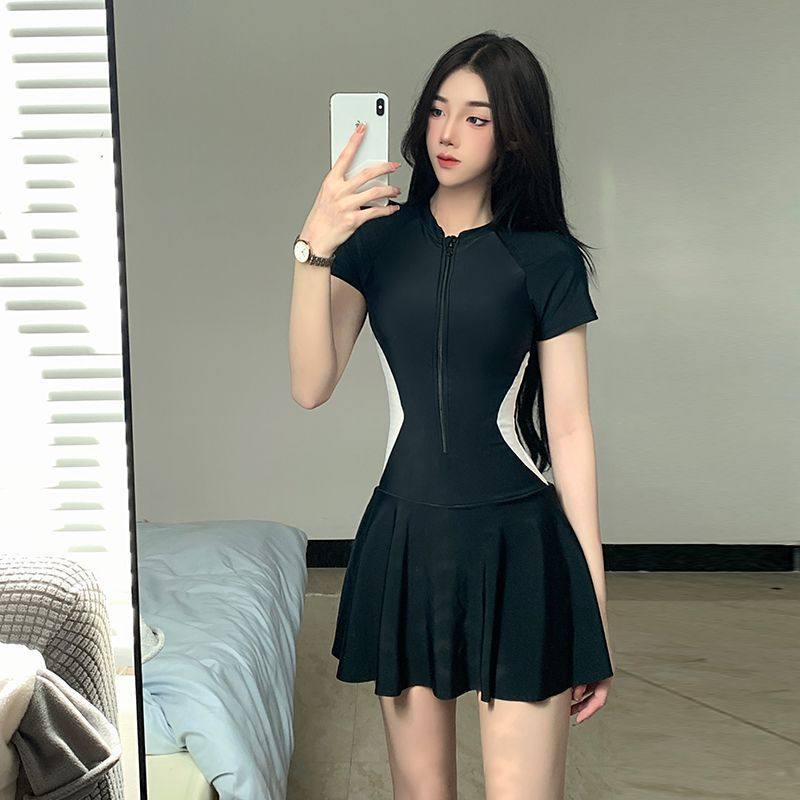 泳衣女温泉泳装连体运动裙式保守大码显瘦新款学生专业女士游泳衣