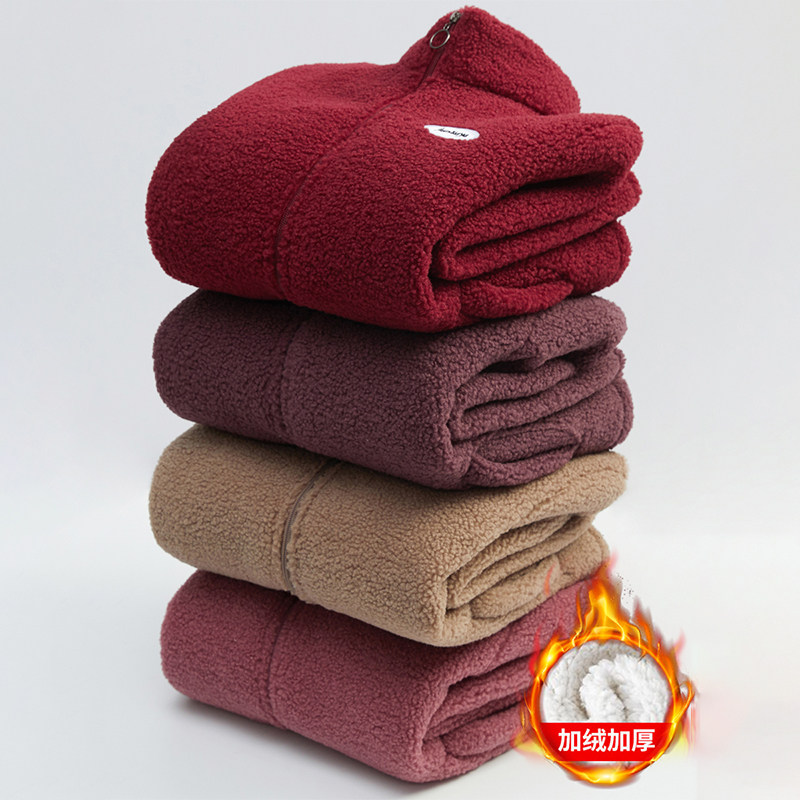 妈妈秋冬加绒加厚连帽外套女中老年人大码时尚宽松颗粒绒保暖上衣