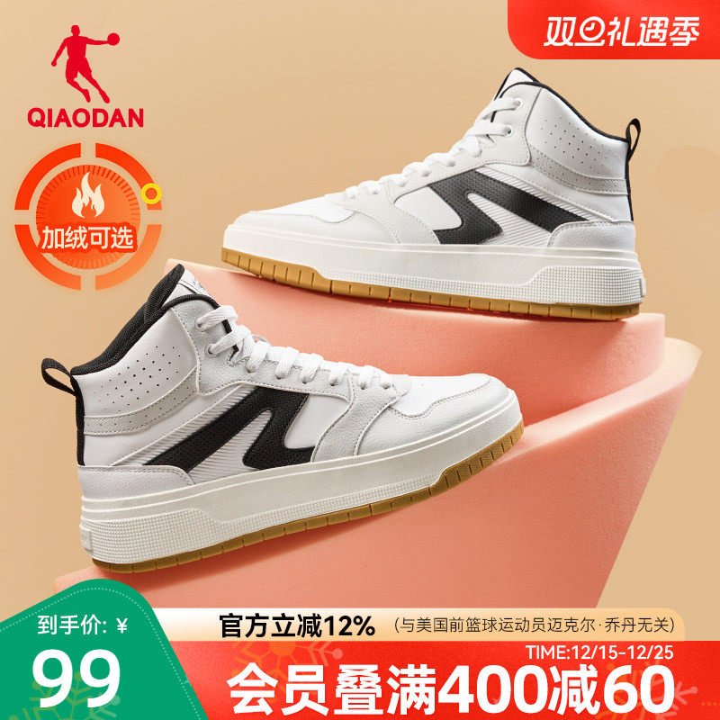 月白|乔丹加绒保暖高帮厚底增高男板鞋2025年皮面新品休闲运动鞋