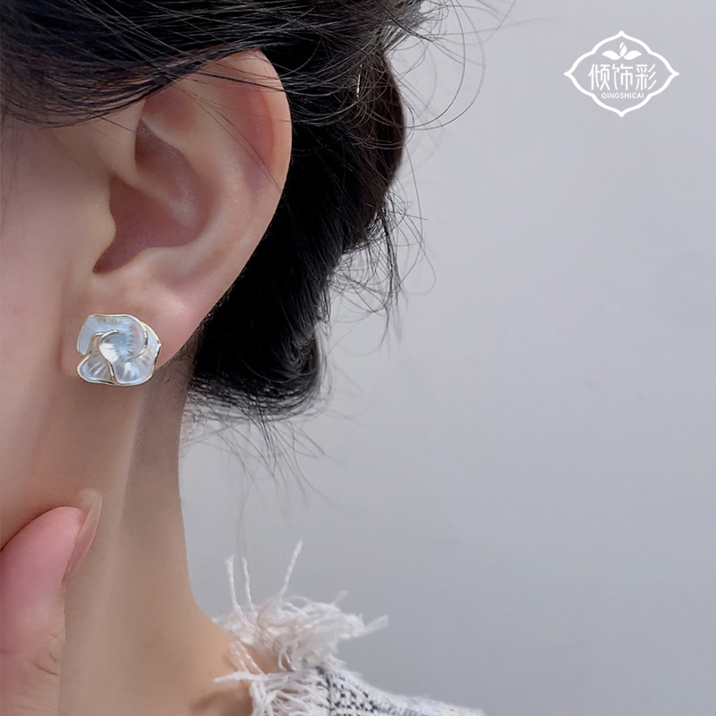 山茶花耳钉999纯银针女款耳环轻奢高级感气质2025年爆款耳饰足银