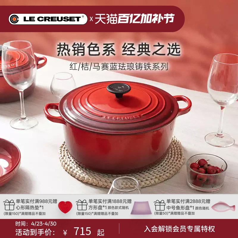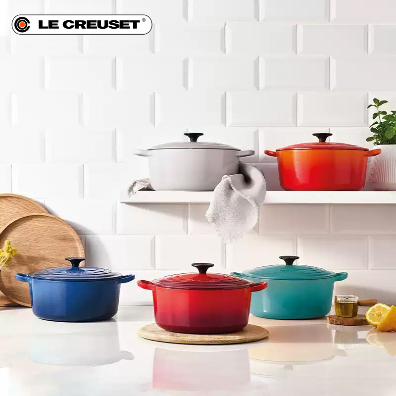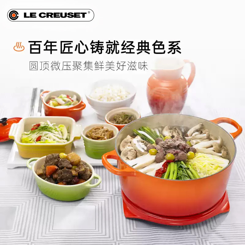 百年酷彩LECREUSET红桔色珐琅铸铁锅海鲜锅深烧焖煮锅礼物