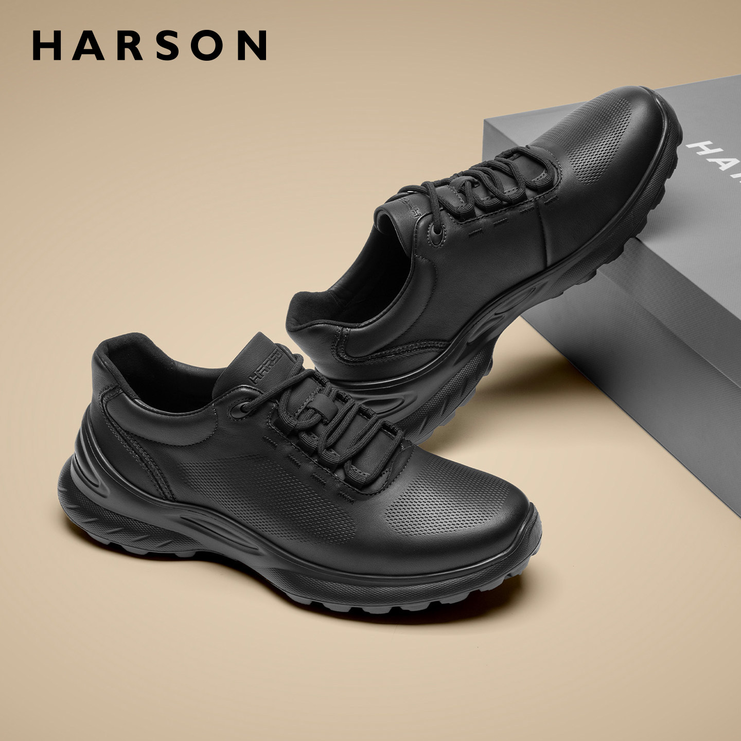 哈森男鞋春季新款商务运动鞋防滑软底公务男士皮鞋低帮通勤休闲鞋