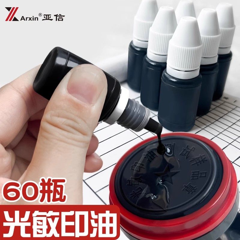 红色光敏印油60瓶装印章油印泥印台补充液油墨速干大瓶1000ml颜色纯正盖章秒干万次章财务专用非原子回墨印油