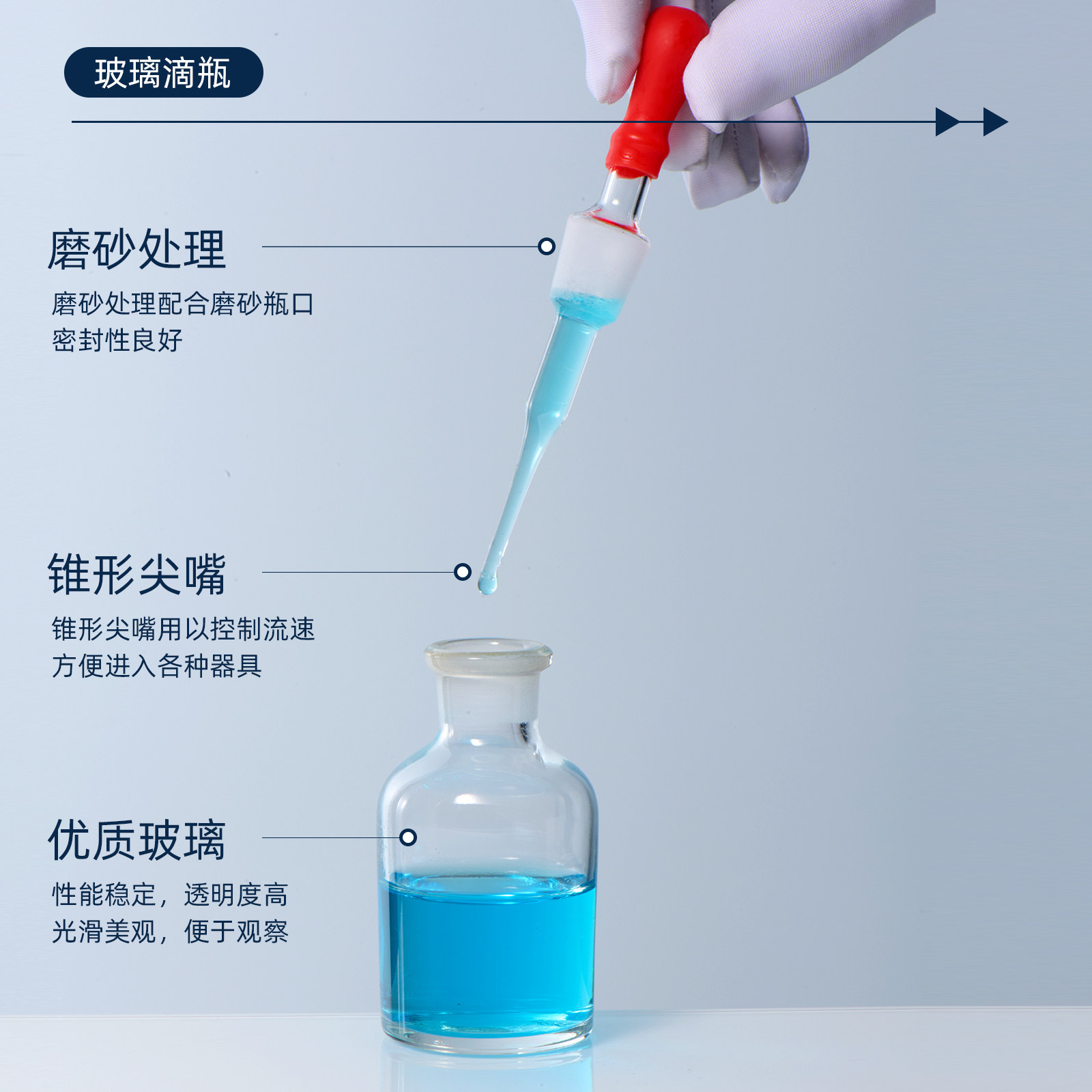 三爱思玻璃滴瓶含吸滴管30 60 125ml配乳胶头小滴管磨砂指示剂存放避光精油试剂化学药品试管吸管实验室仪器