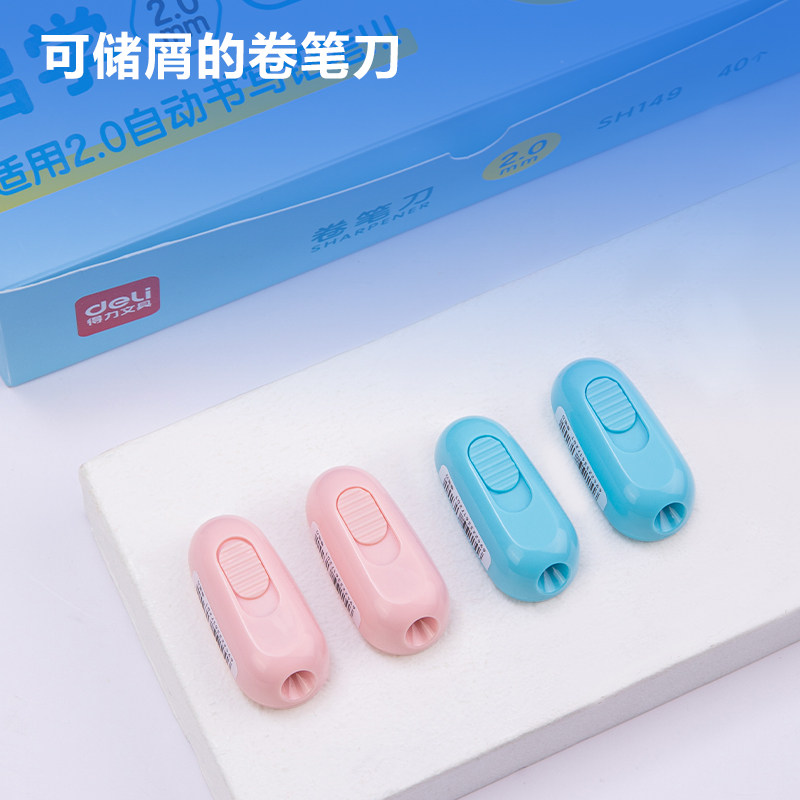 得力启学铅芯卷笔刀2.0mm自动铅笔专用小学生手动削笔刀高颜值可储屑迷你转笔刀幼儿园削粗铅芯削笔器SH149