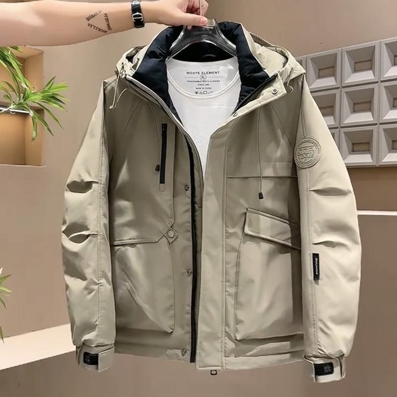 户外男士羽绒服帅气潮牌加厚保暖连帽防寒服男款休闲外紫色黑色