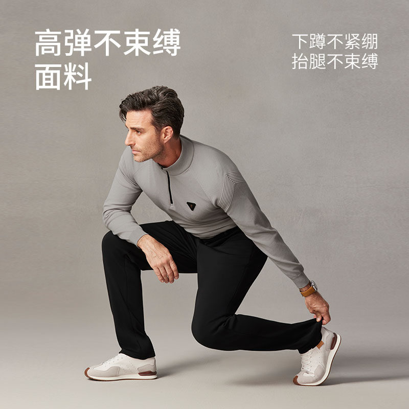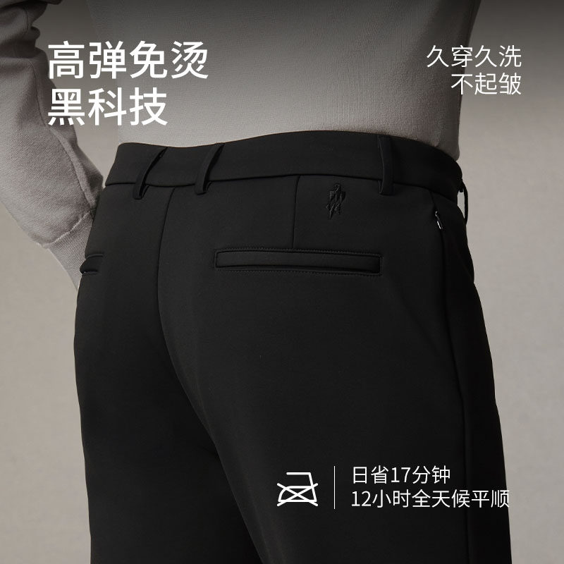 【北极绒保暖】欧定头等舱休闲裤男秋冬新款极夜黑色商务定制西裤