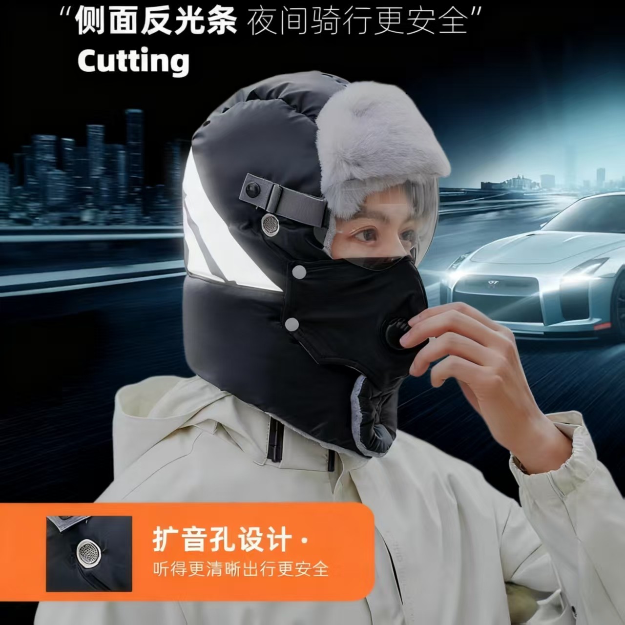 冬季骑行帽子女保暖防寒风神器套头电动车风雪遮脸男面罩棉雷锋帽